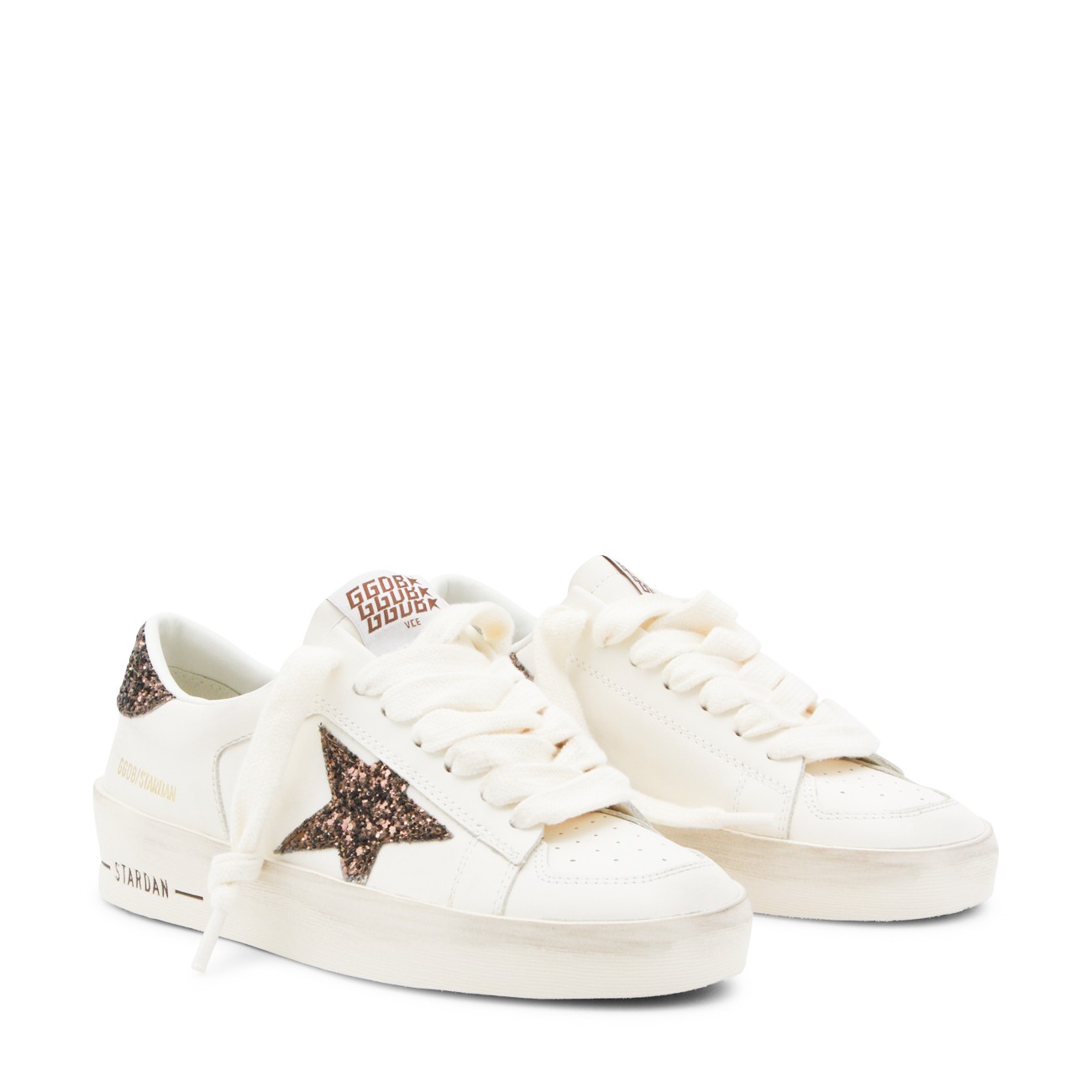 WHITE AND BEIGE LEATHER SUPER STAR...