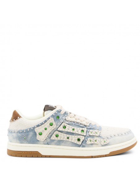 Blue sneakers from Amiri featuring round toe, lace up fastening, all over studs details and rubber sole.