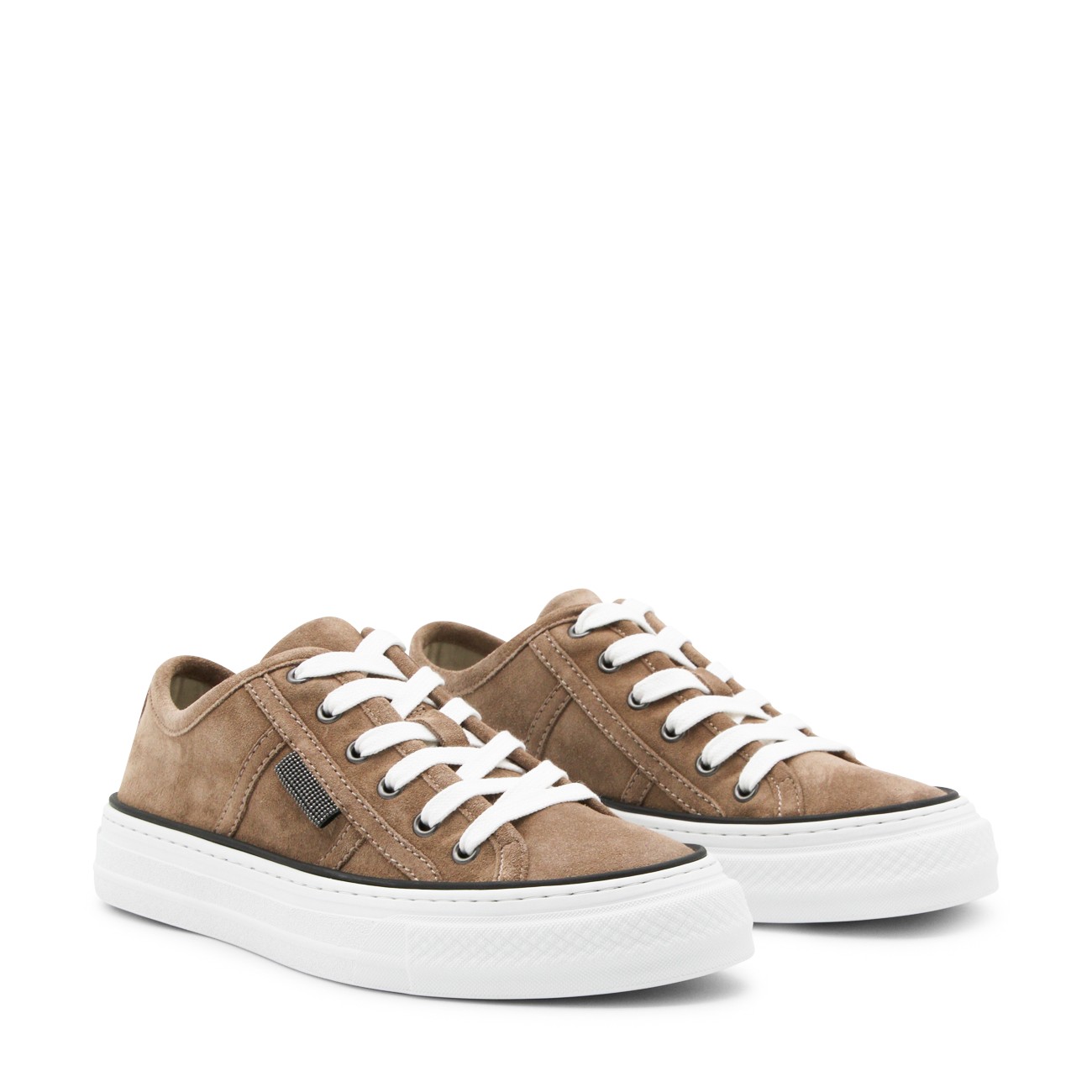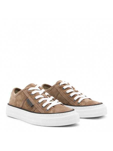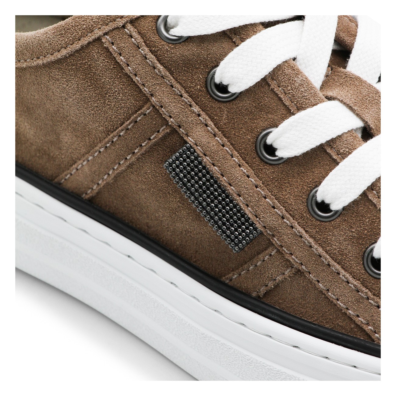 Brown leather sneakers from Brunello Cucinelli featuring round toe, cotton lace-up fastening, stitching details and rubber sole.