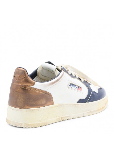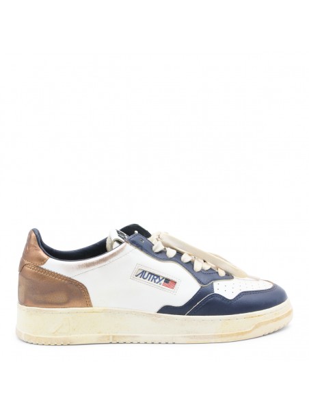 WHITE AND BLUE LEATHER MEDALIST SNEAKERS