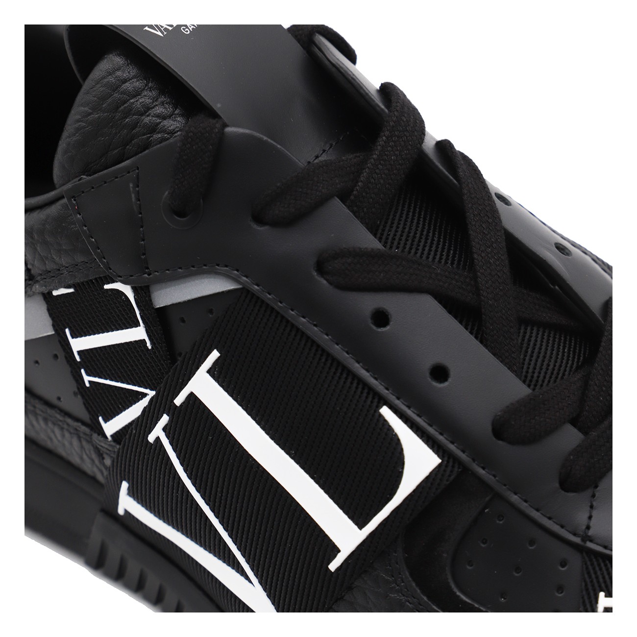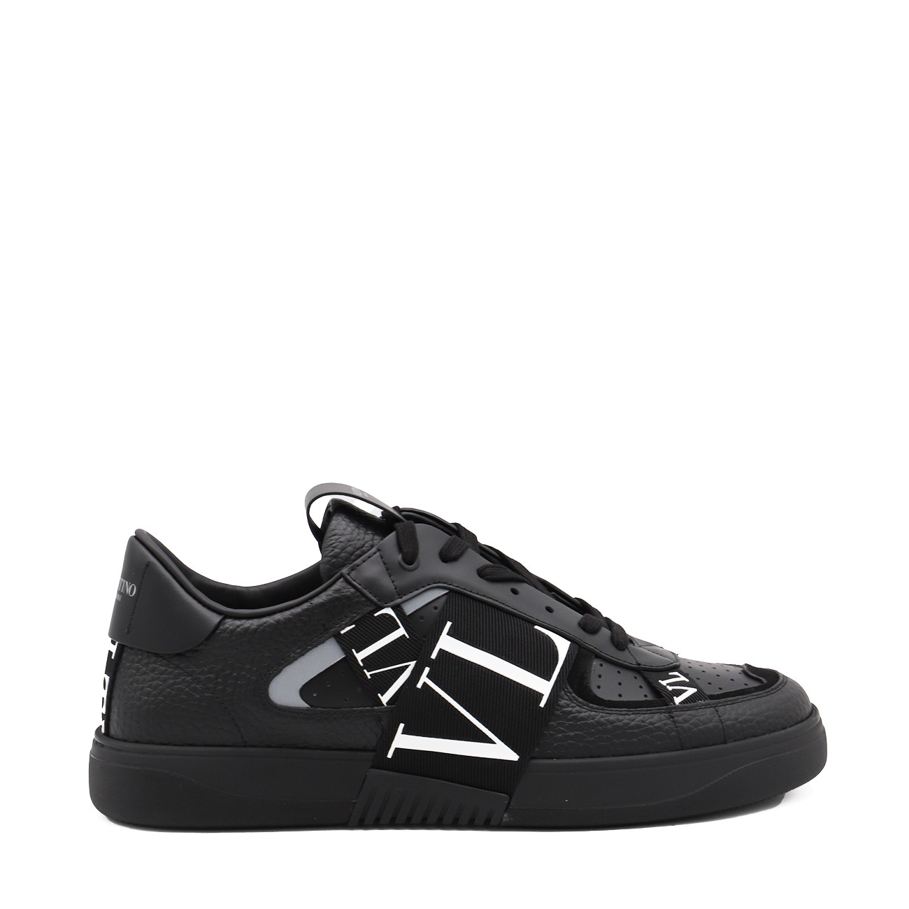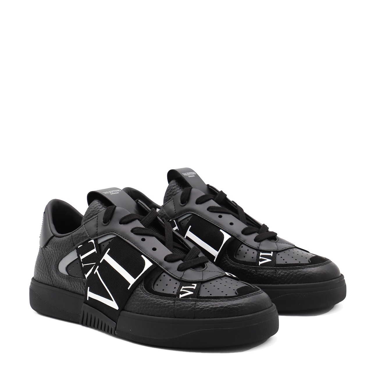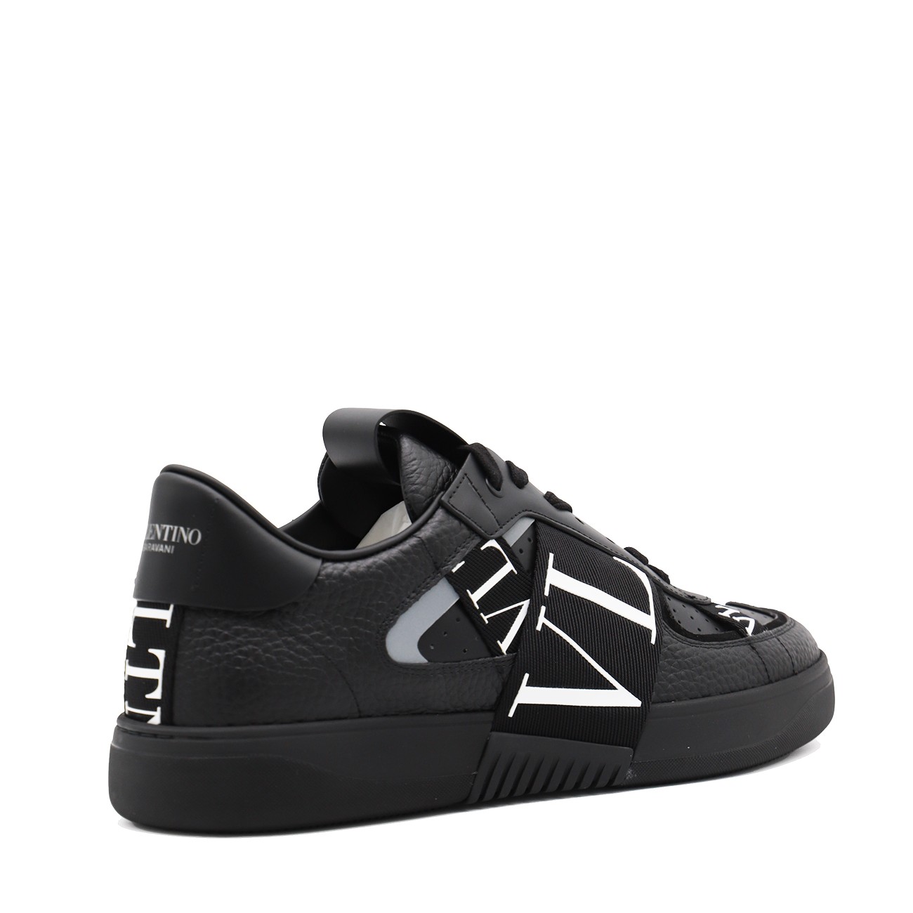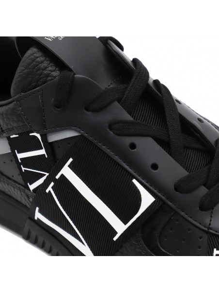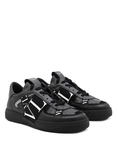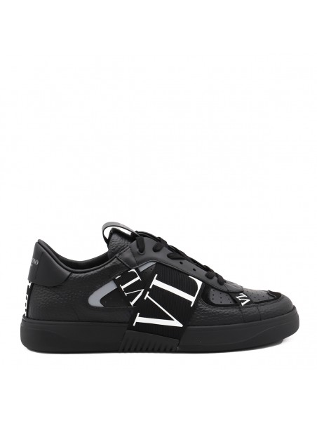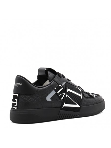 Black leather VL7N sneakers from Valentino Garavani featuring round toe, cotton lace-up fastening, ribbons with rubber-effect logo, printed logo on the back and tongue and rubber sole.