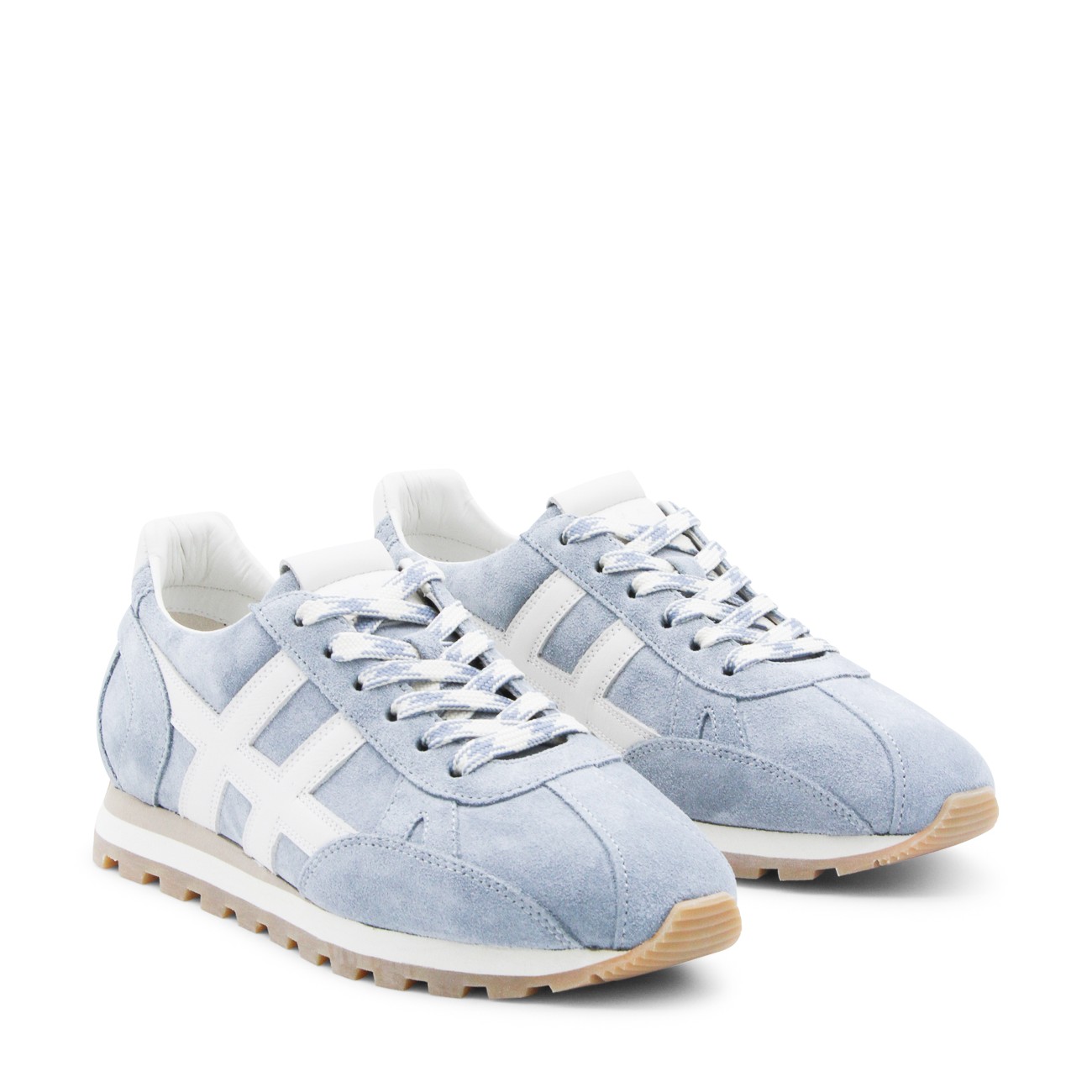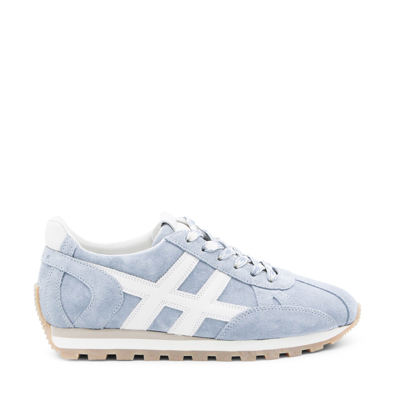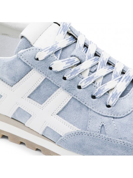 Jeans leather sneakers from Hogan featuring pointed toe, cotton lace-up fastening, suede upper, smooth leather H patch and rubber sole.