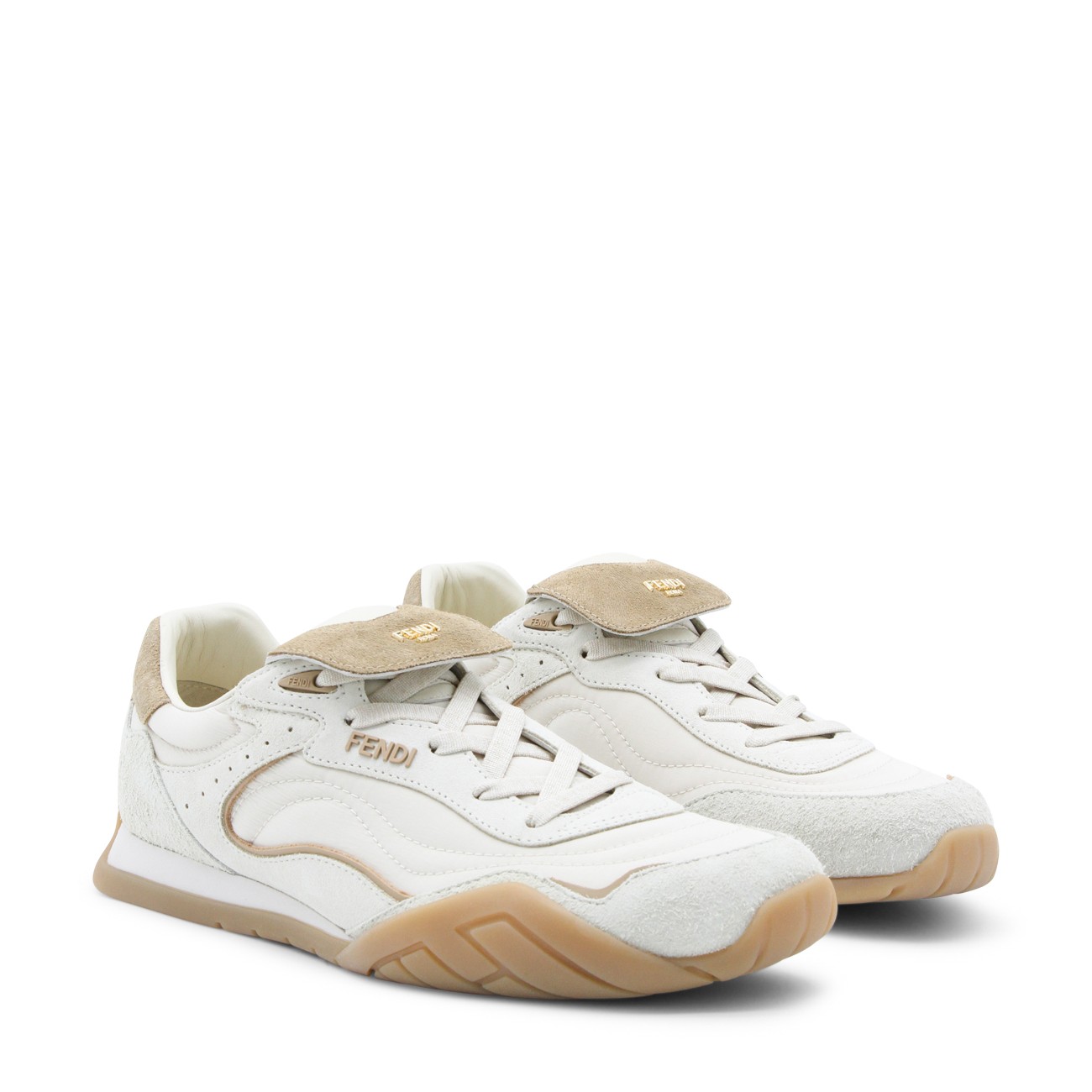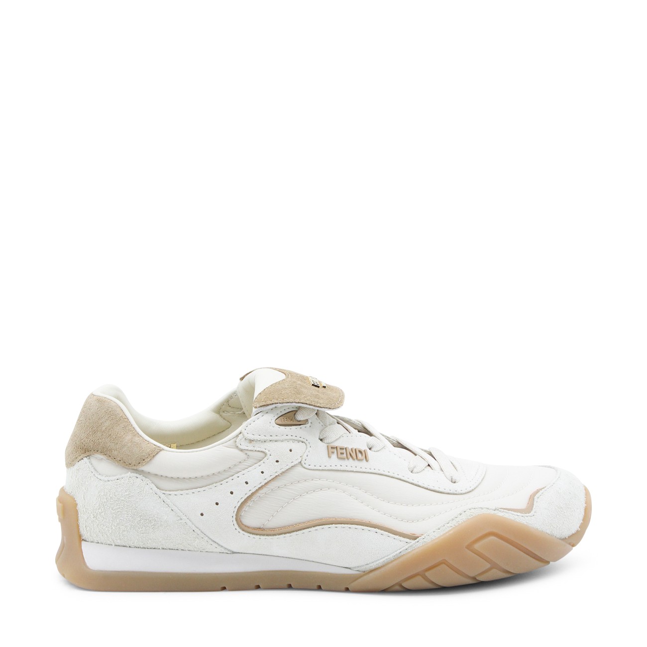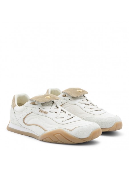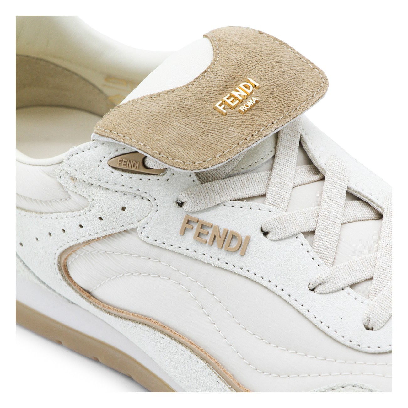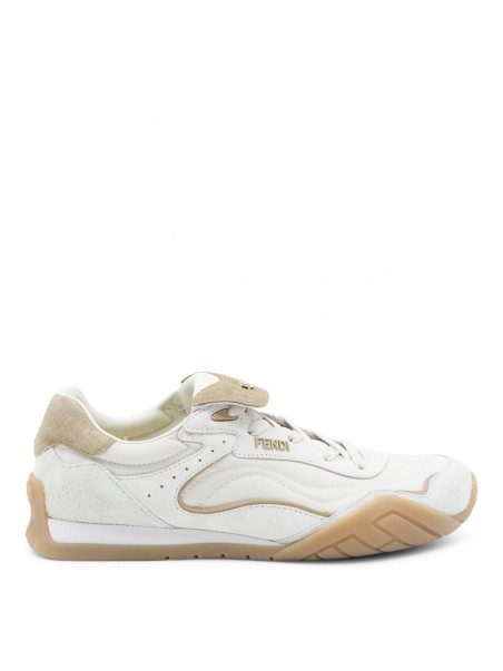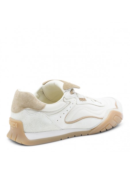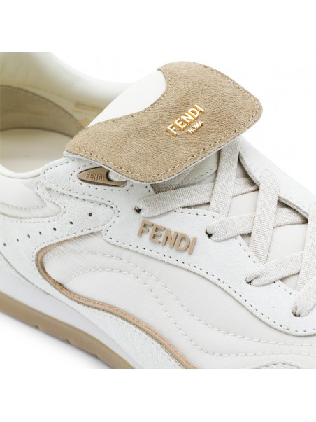 White leather sneakers from Fendi featuring round toe, laces fastening, lateral logo and leather sole.