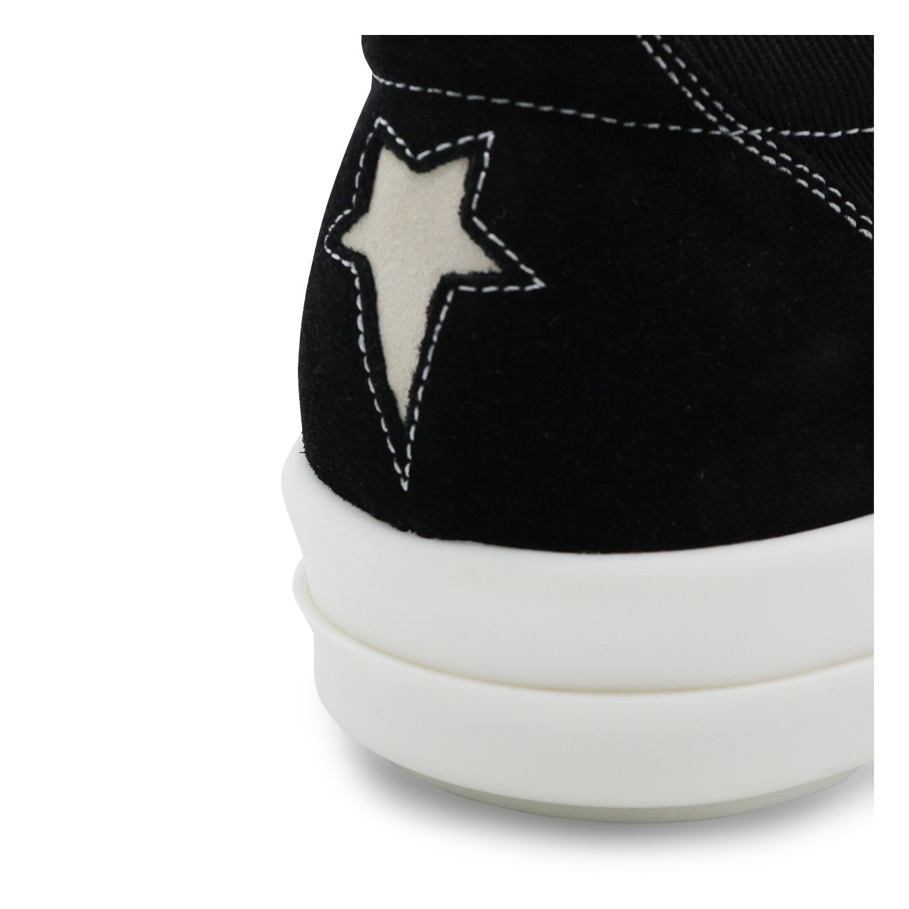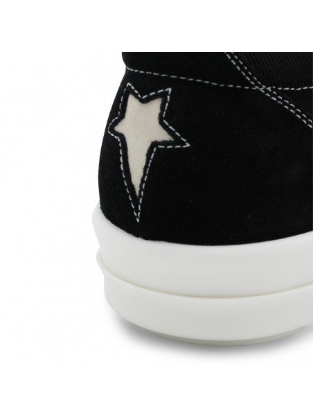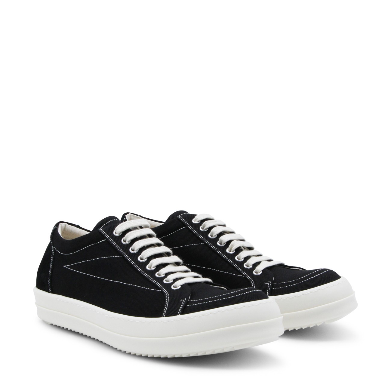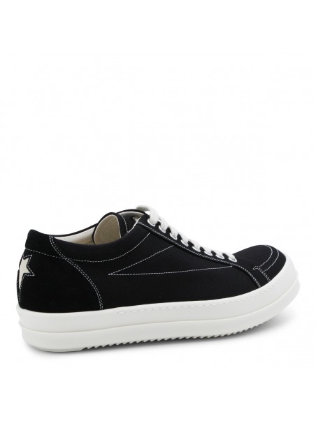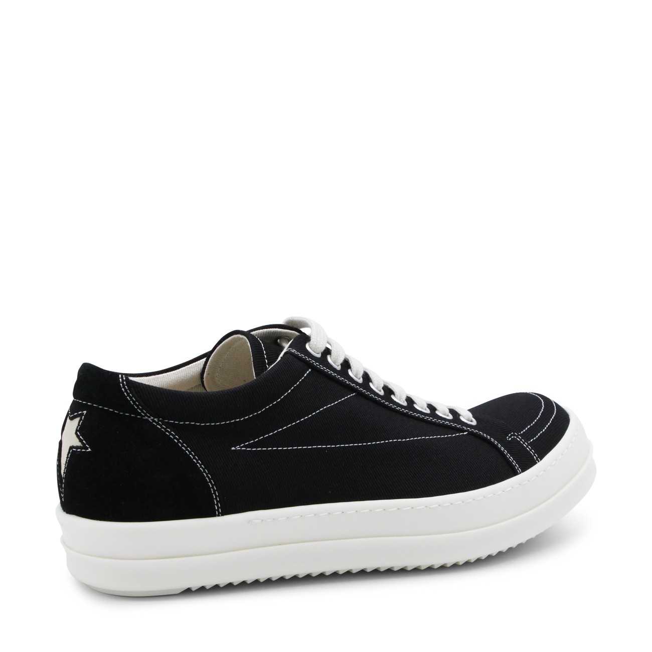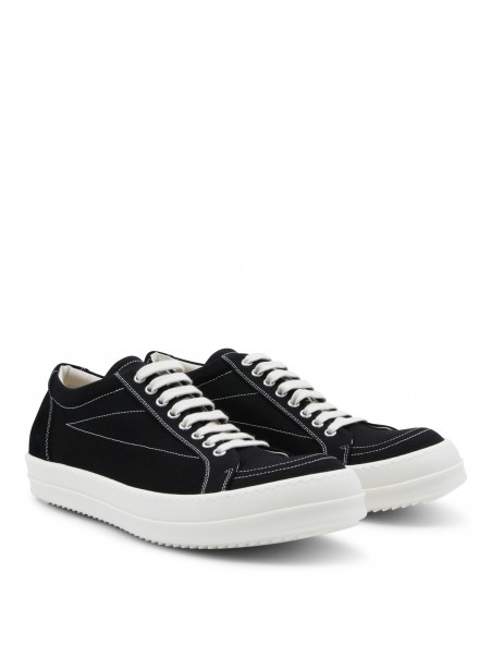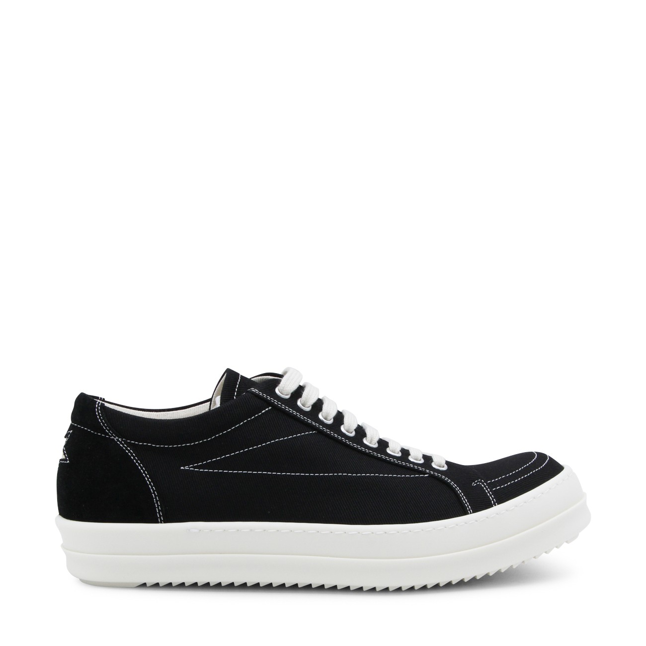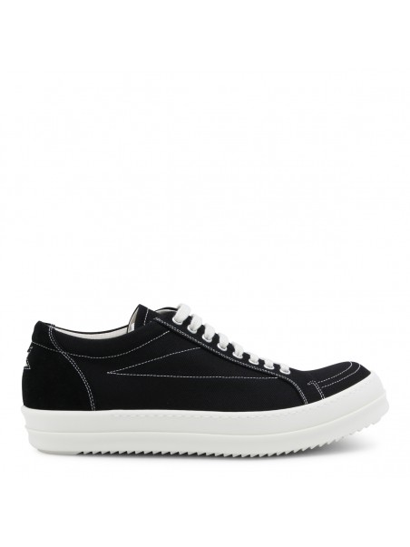 Black and milk canvas Vintage sneakers from Rick Owens featuring rubber sole, round toe, cotton laces, logo details at side and branded insole.