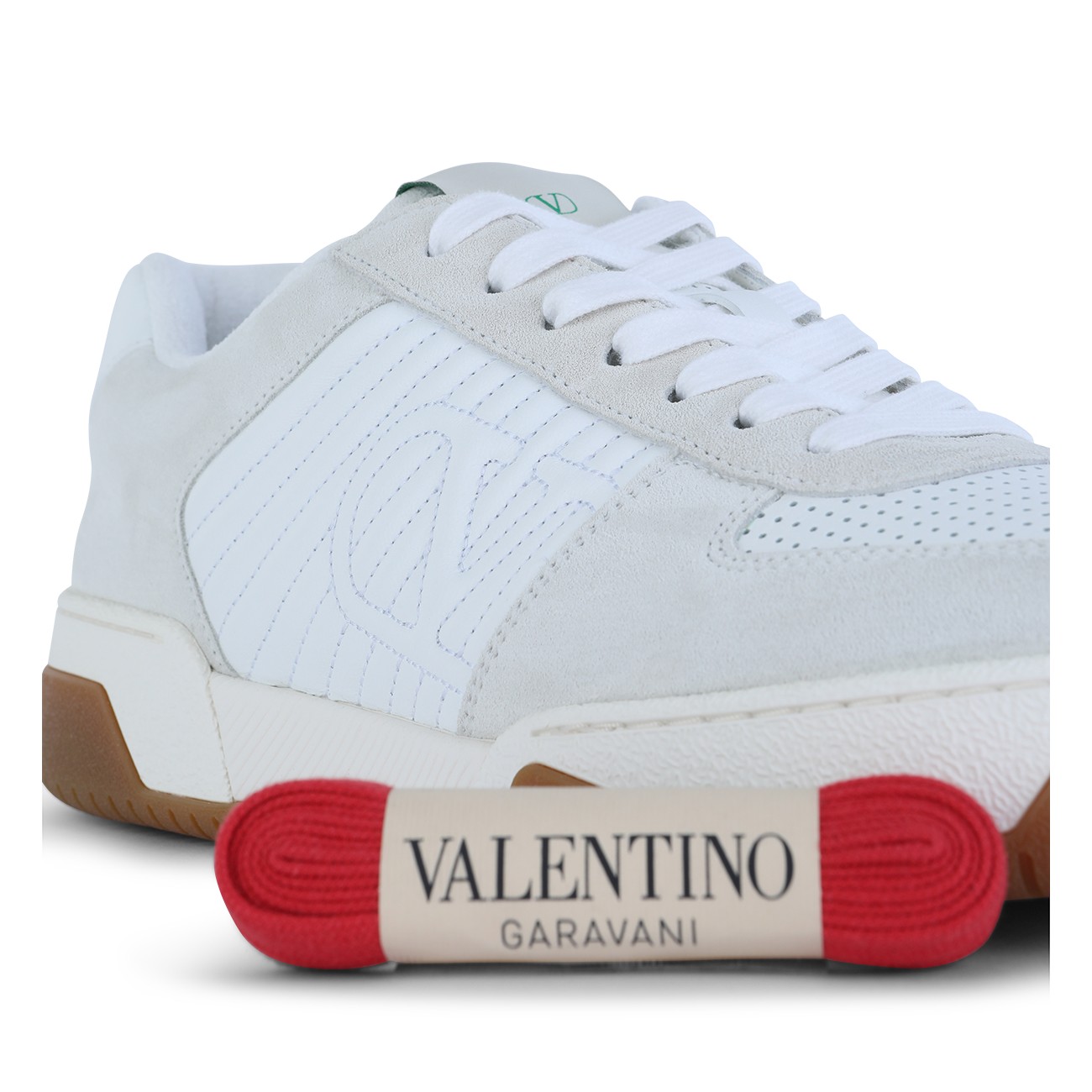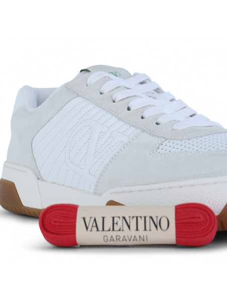 White leather sneakers from Valentino Garavani featuring round toe, laces fastening, lateral logo, rubber sole and regular vestibility.
