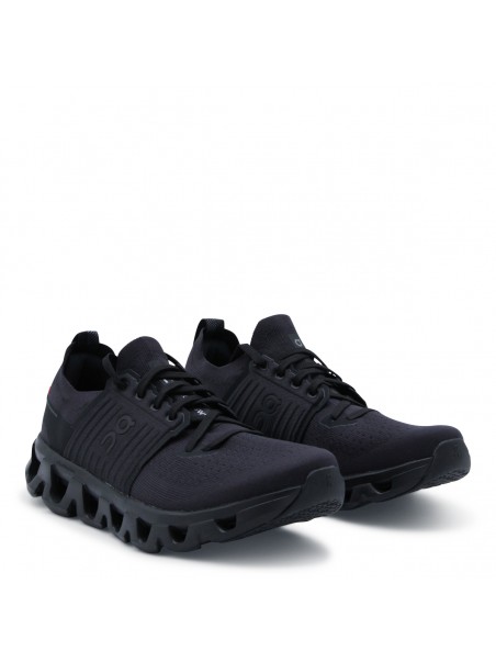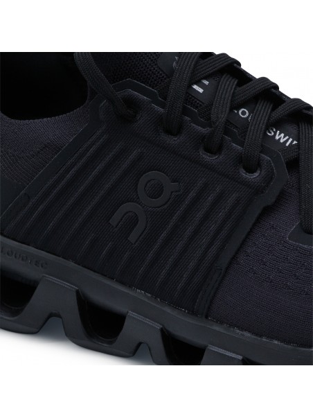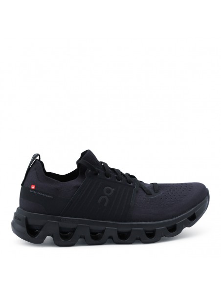 Black Cloudswift 4 sneakers from On featuring round toe, laces fastening, lateral logo print, branded insole and rubber sole.