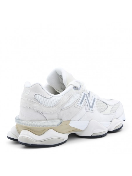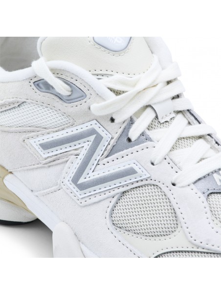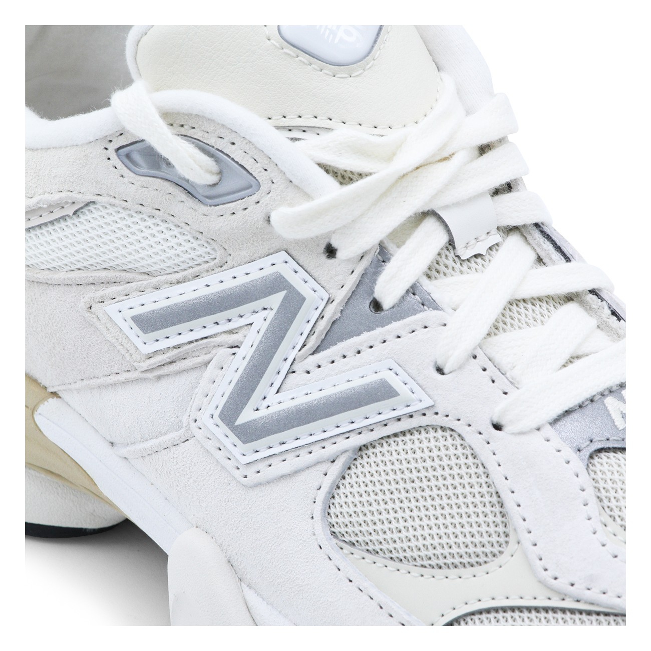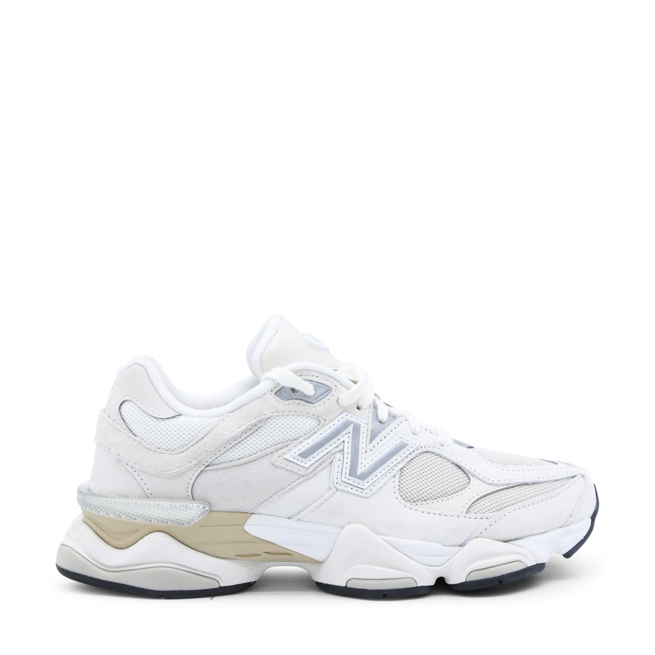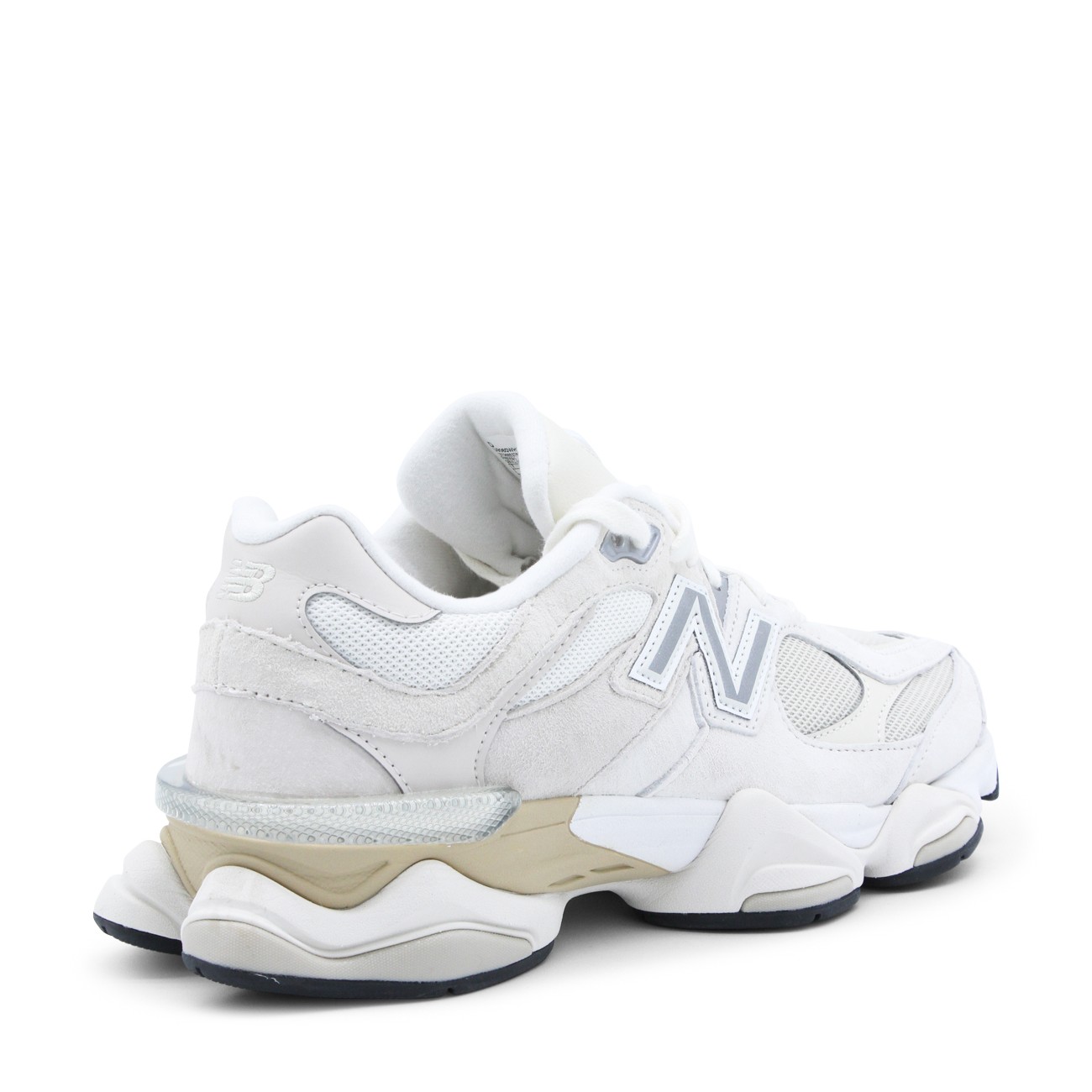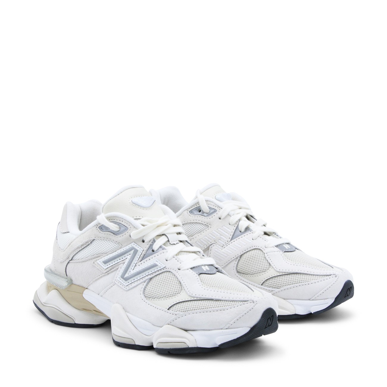 Off white Sea Salt 9060 sneakers from New Balance featuring rubber multiple sole, cotton laces, logo inserts at side and branded tongue.