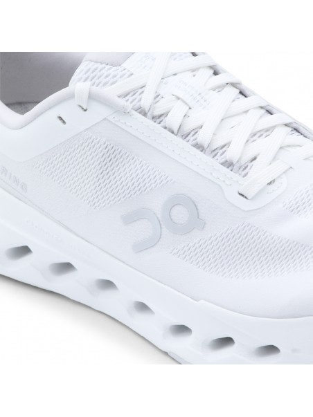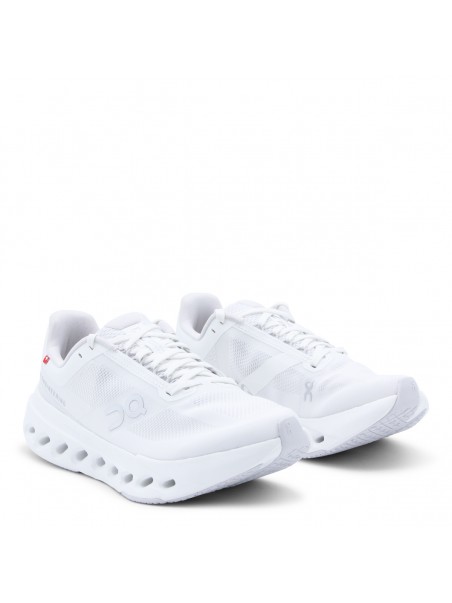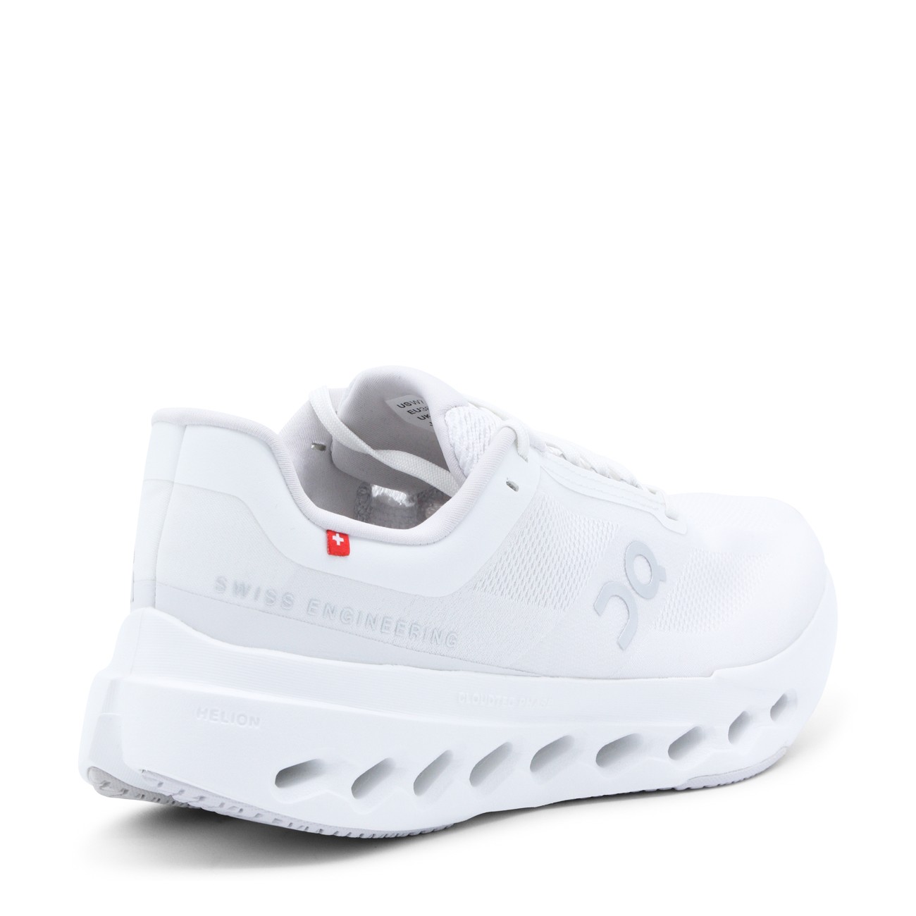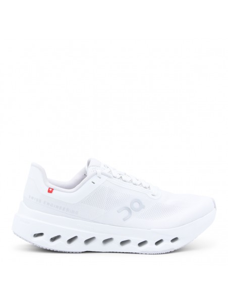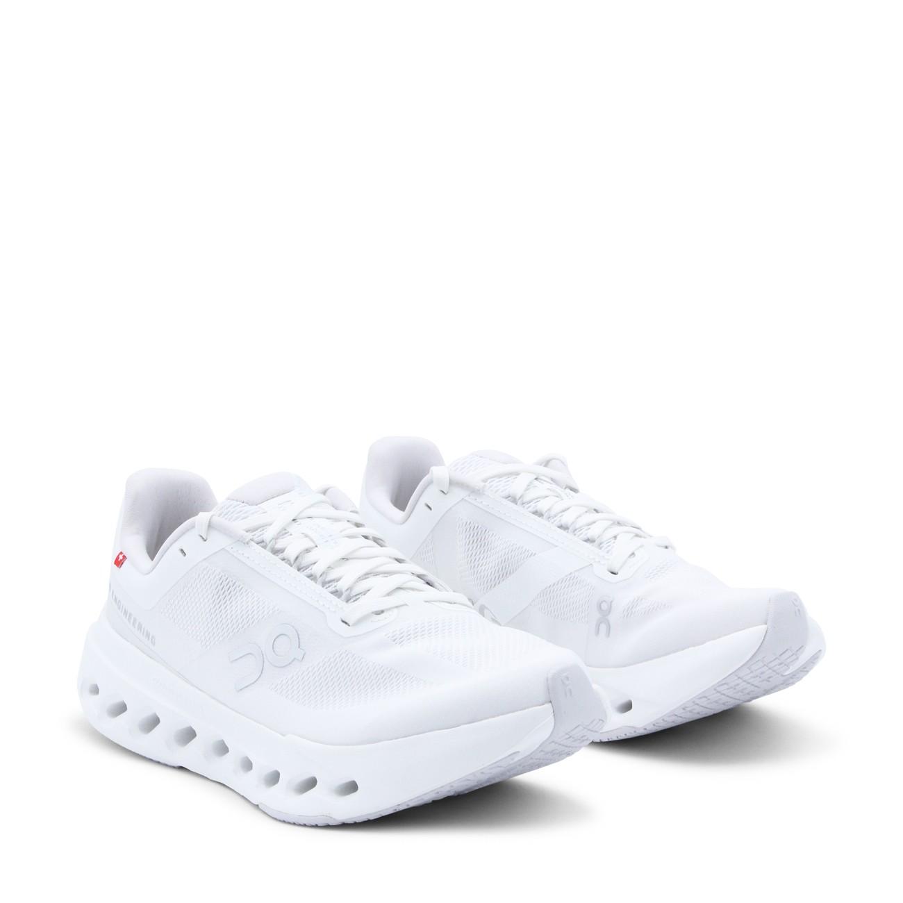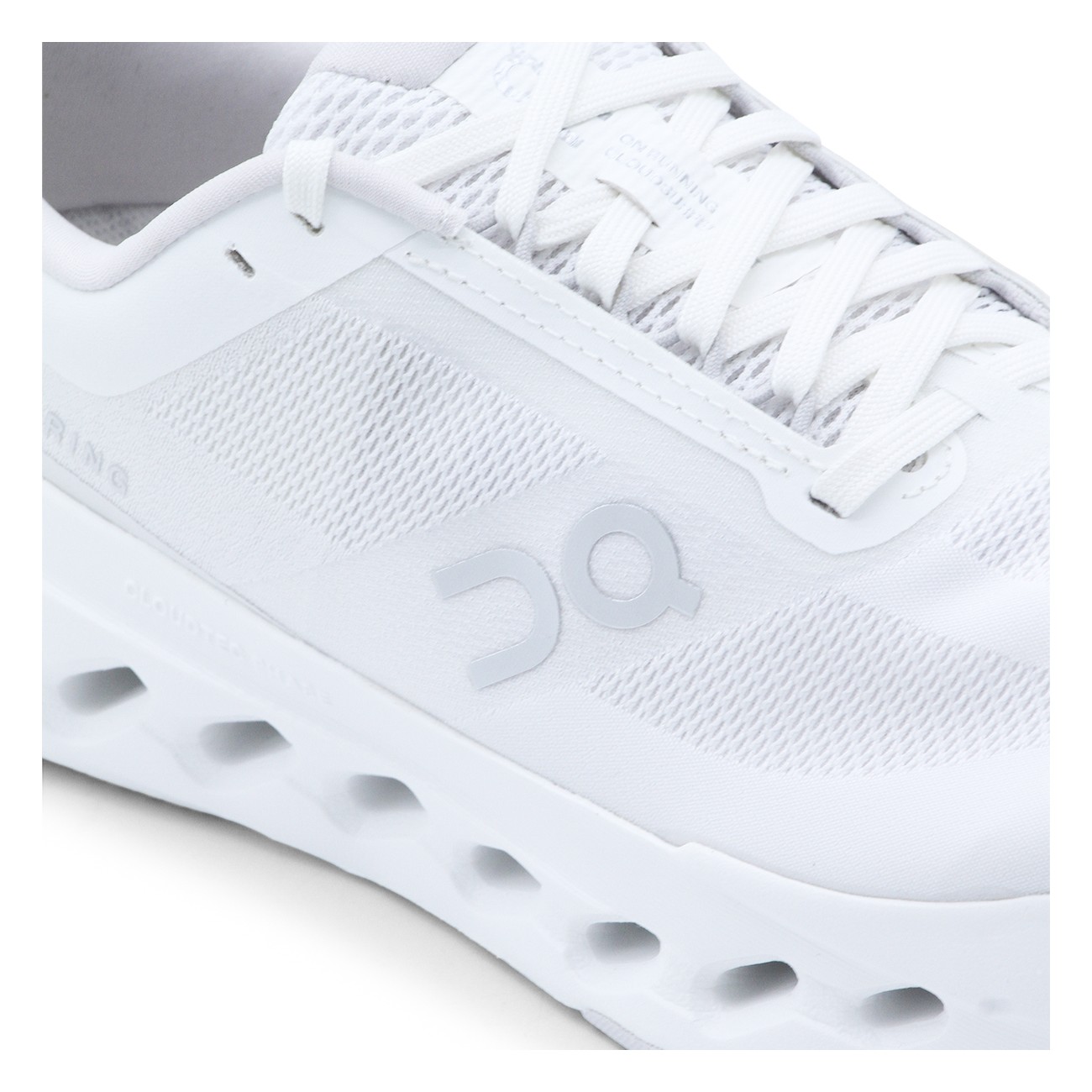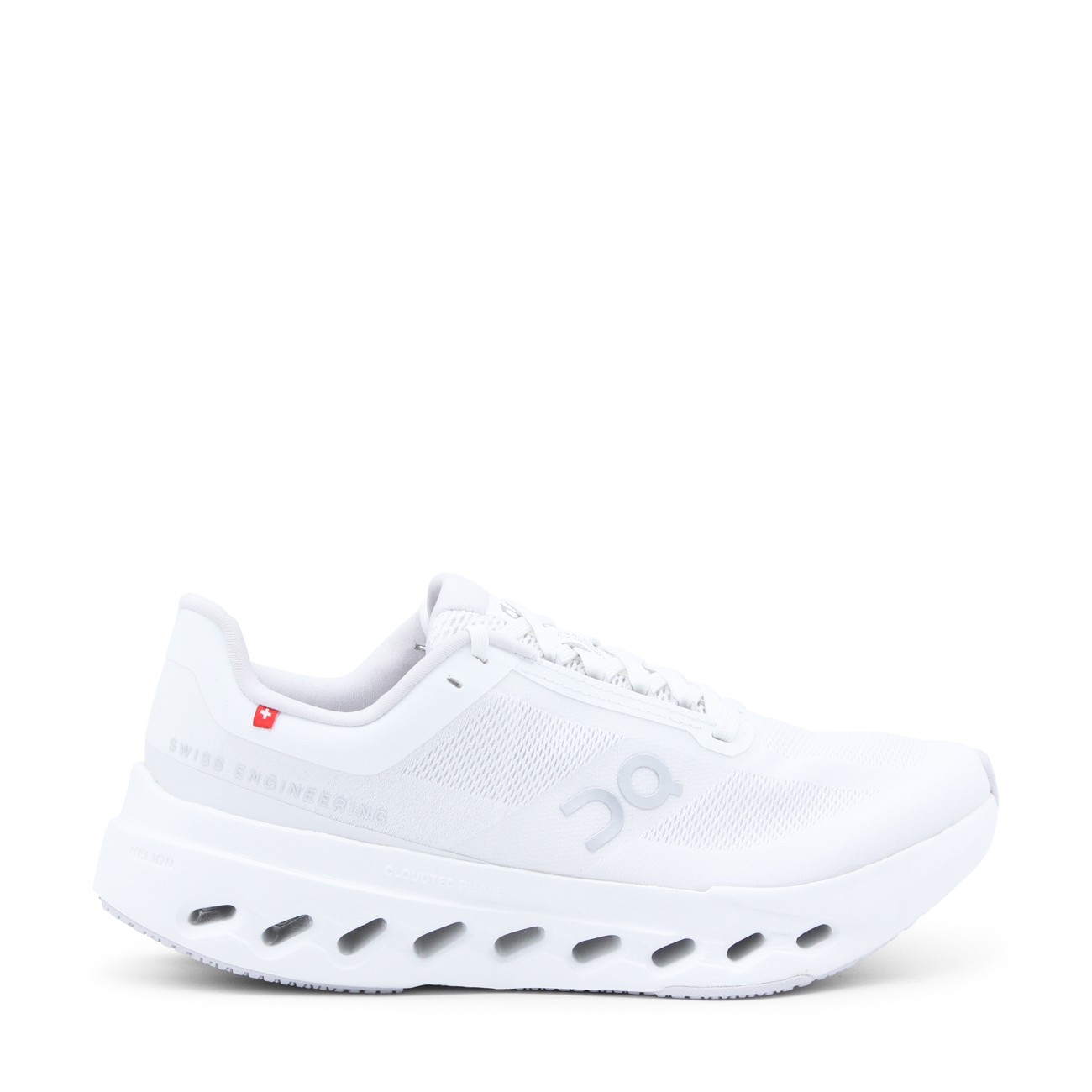 White Cloudsurfer next sneakers from ON featuring rubber sole, mesh inserts, cotton laces and logo details.