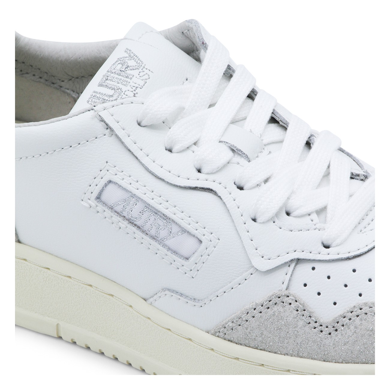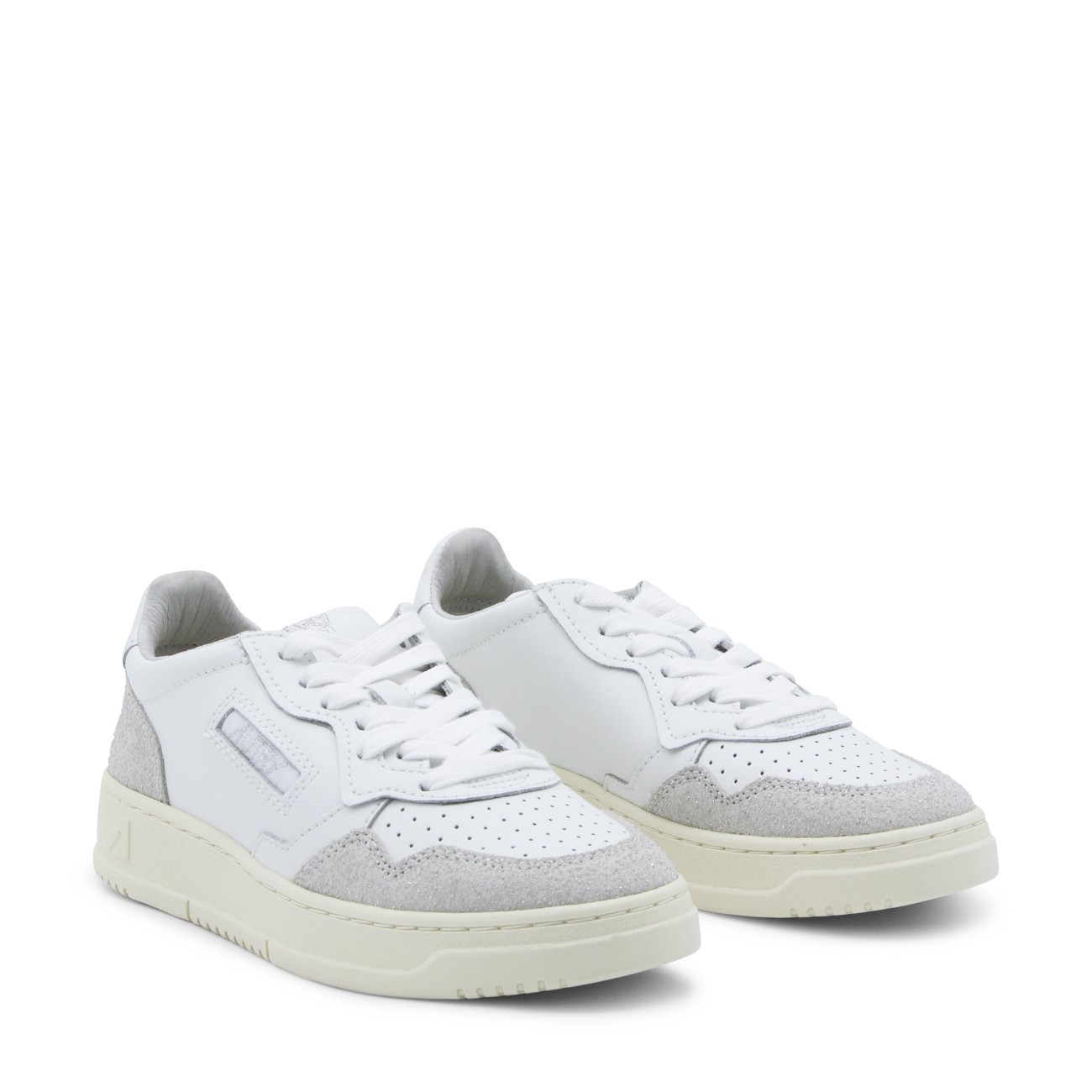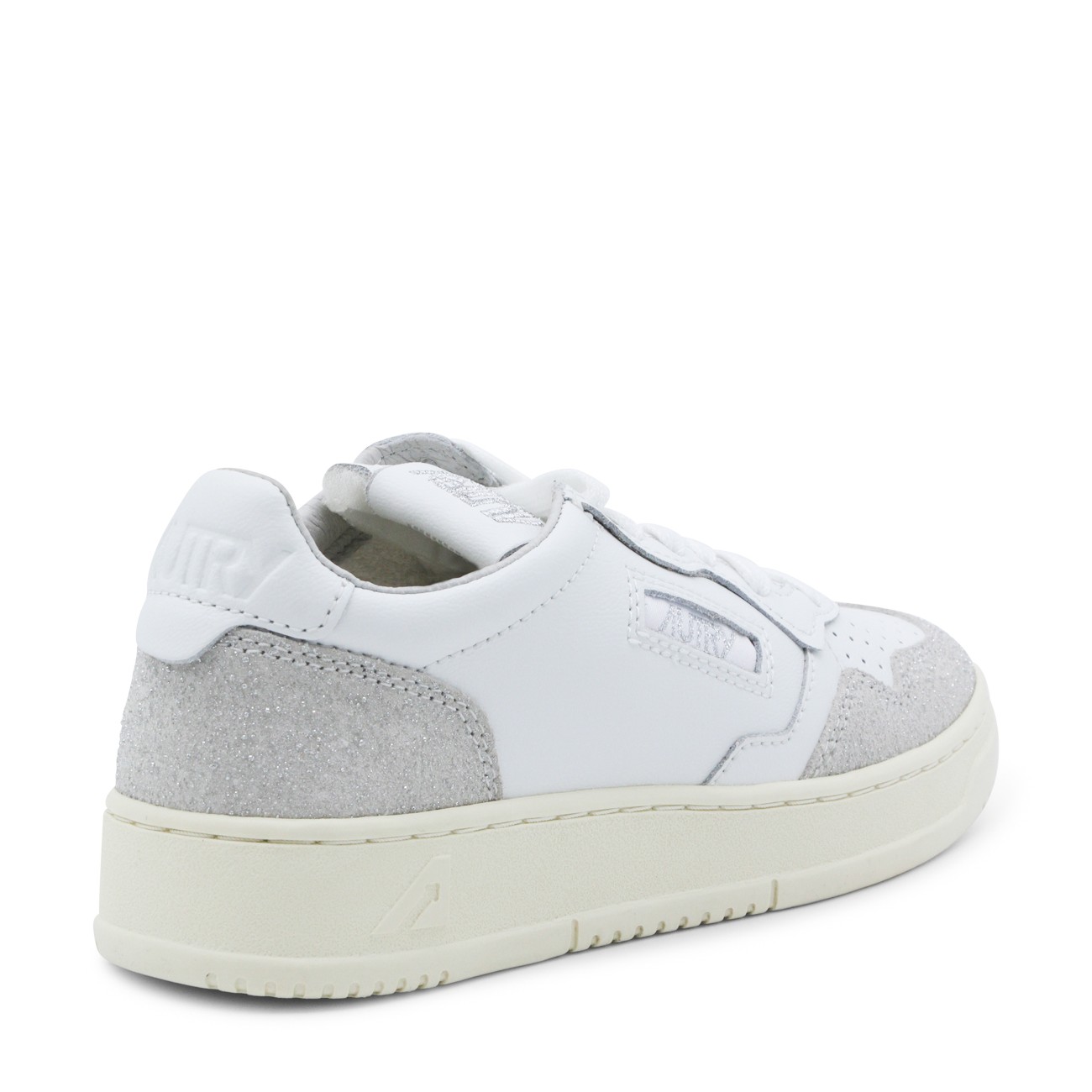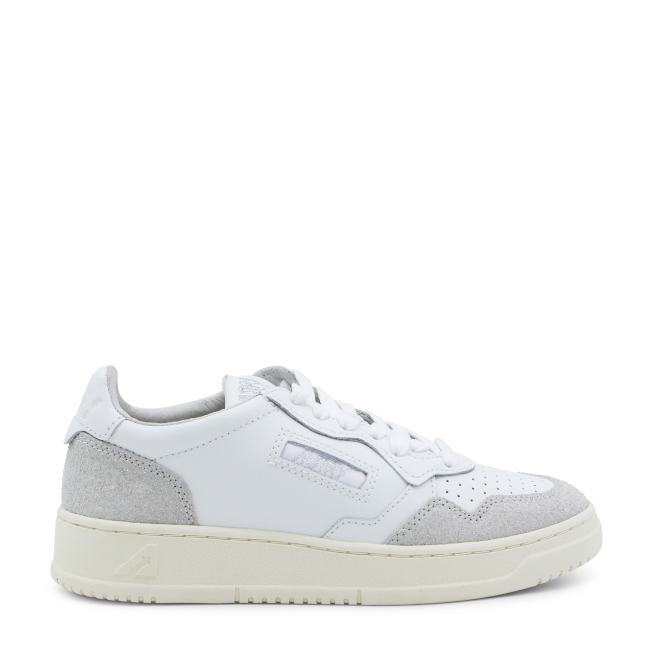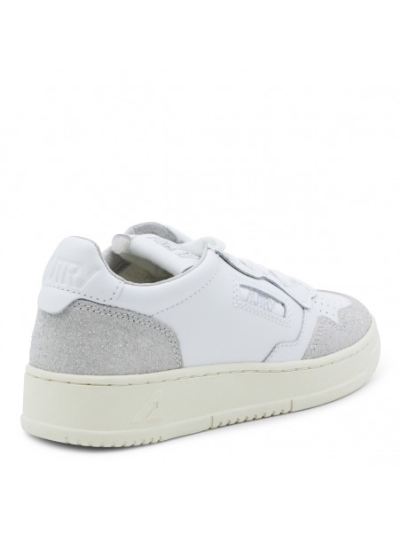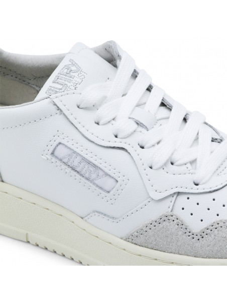 White and grey sneakers from Autry featuring round toe, laces fastening, lateral logo detail and suede details.