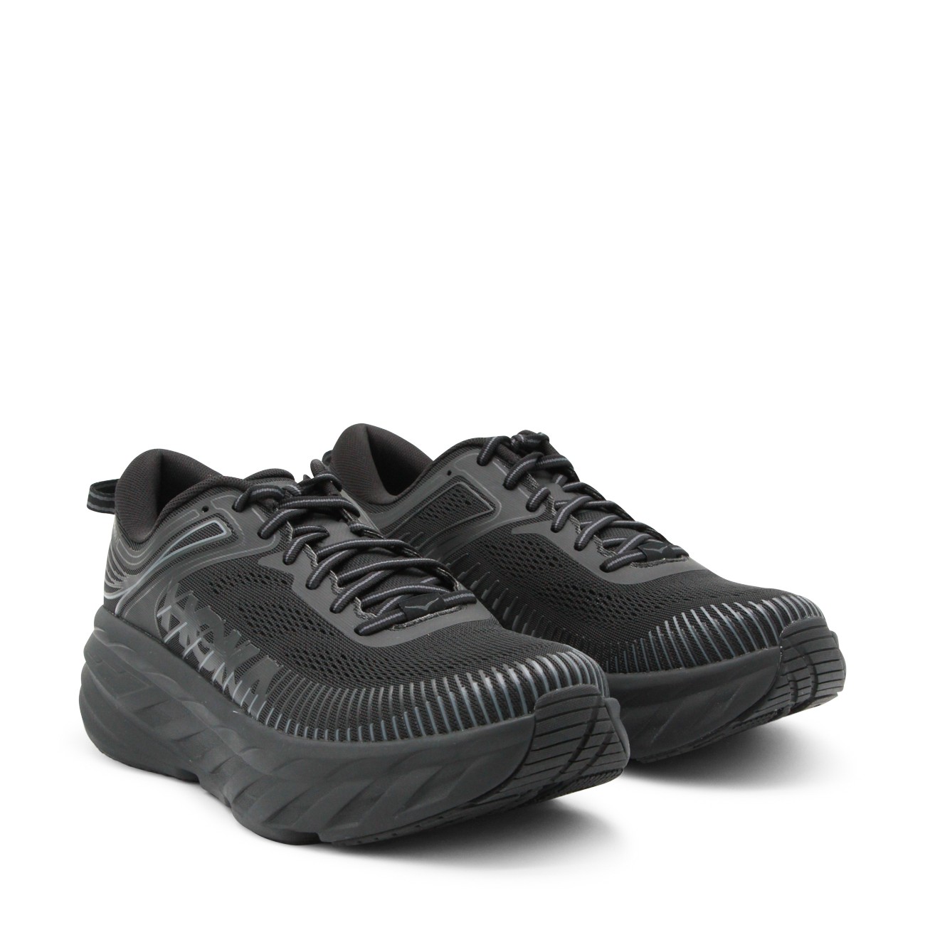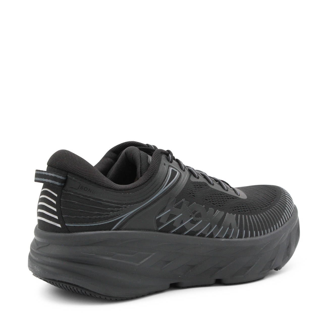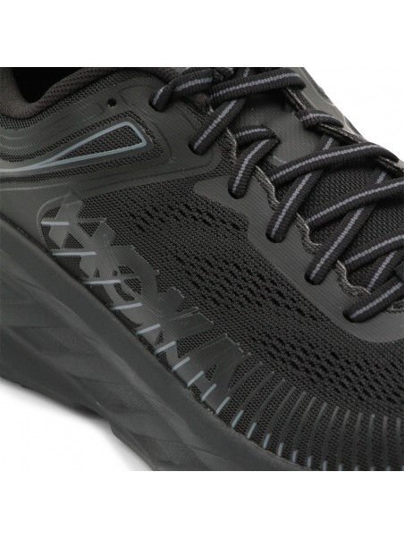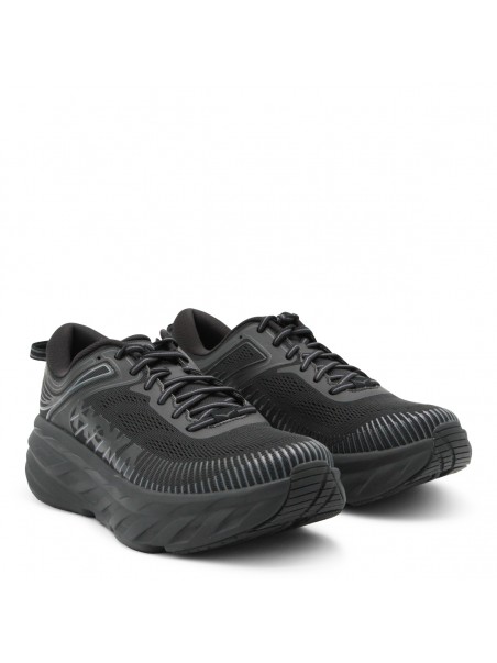 Black M Bondi 7 sneakers from Hoka One One featuring round toe, laces fastening, high rubber sole, lateral logo and regular vestibility.