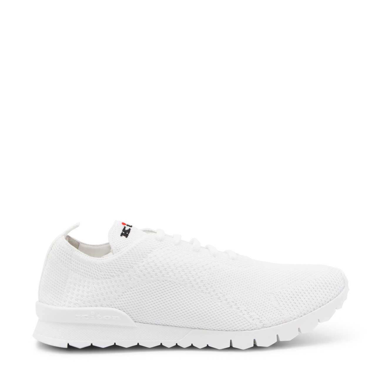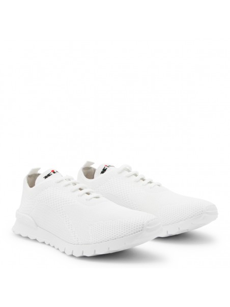 White cotton sneakers from Kiton featuring round toe, laces fastening, rubber sole and comfortable fit.