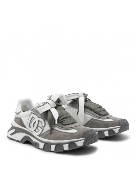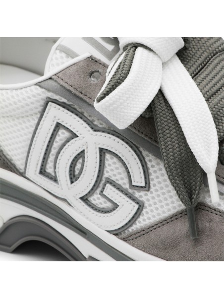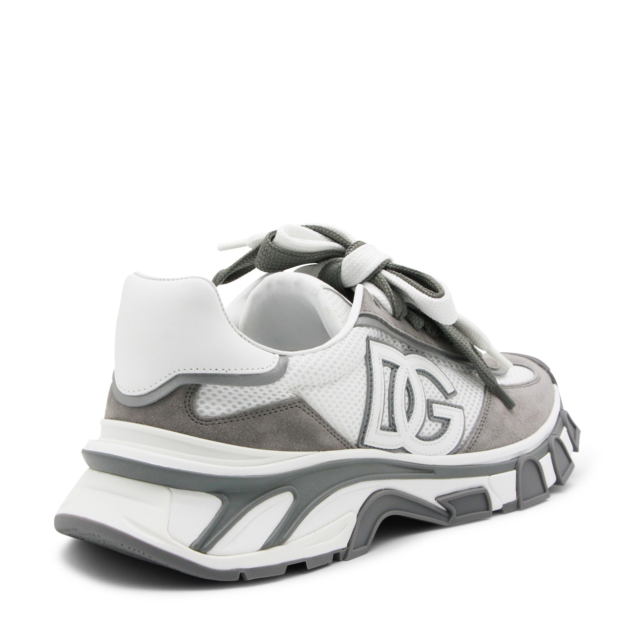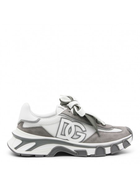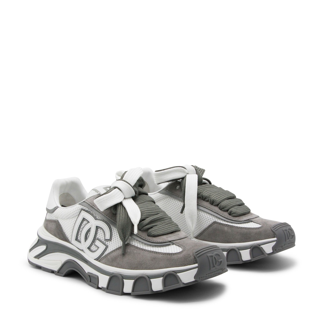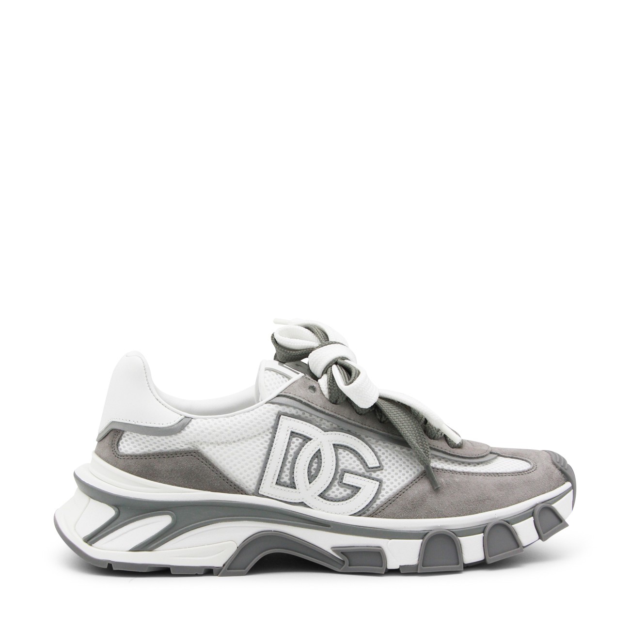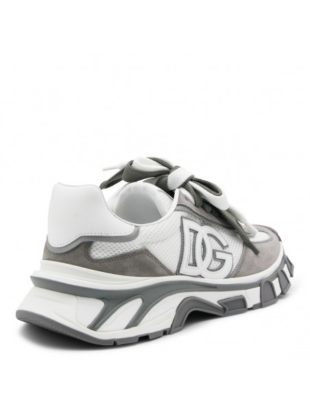 White and grey sneakers from Dolce&Gabbana featuring round toe, laces fastening, lateral logo detail and leather sole.