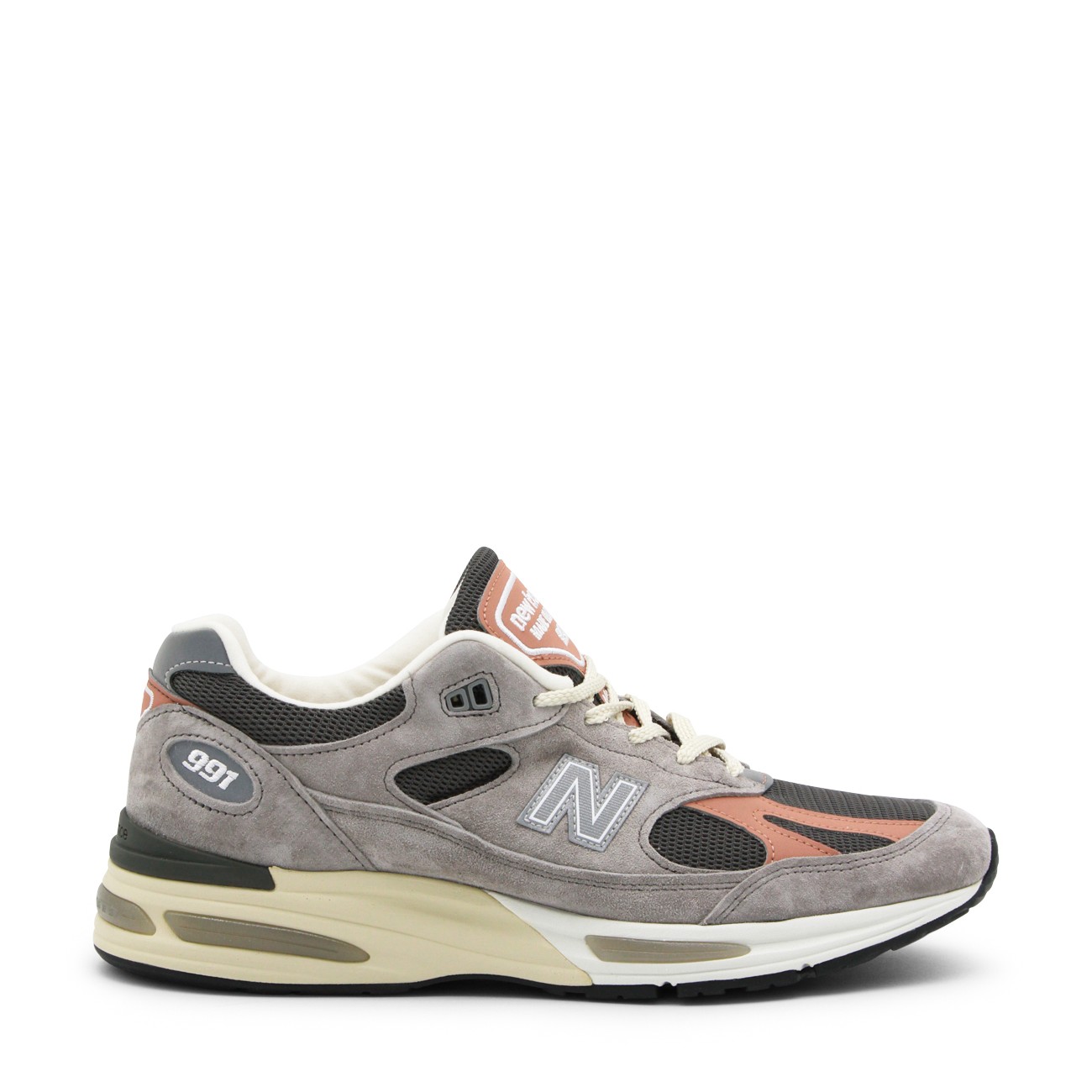 Multicolor leather 991 sneakers from New Balance featuring round toe, laces fastening, contrasting inserts, side logo, branded insole and rubber sole.