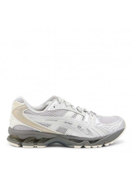 Concrete and pure silver Kayano 14 sneakers from Asics featuring round toe, laces fastening and rubber sole.