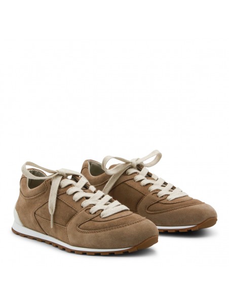 Brown suede sneakers from Brunello Cucinelli featuring cotton laces, round toe, rubber sole and branded sole.