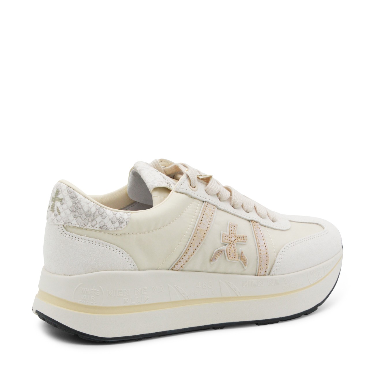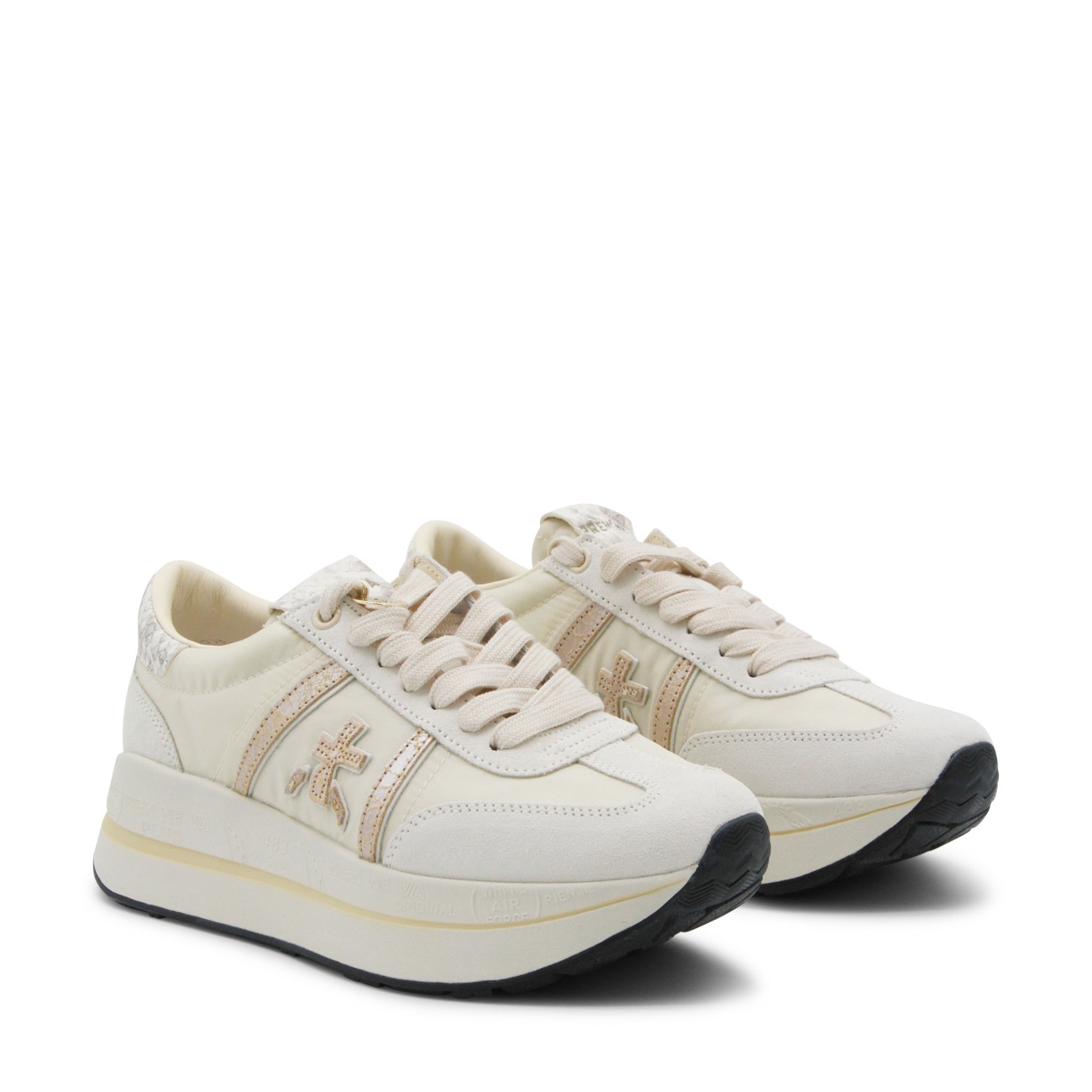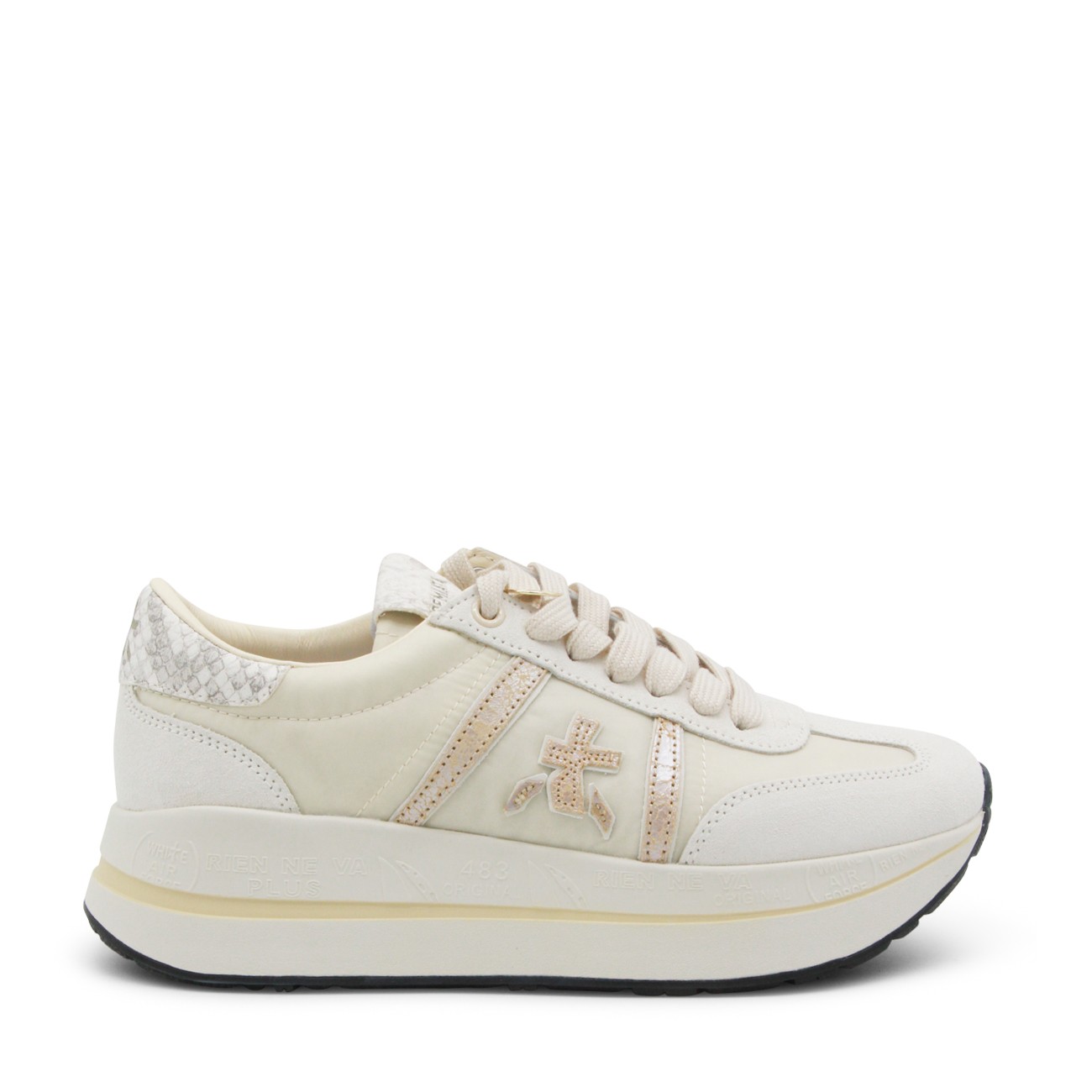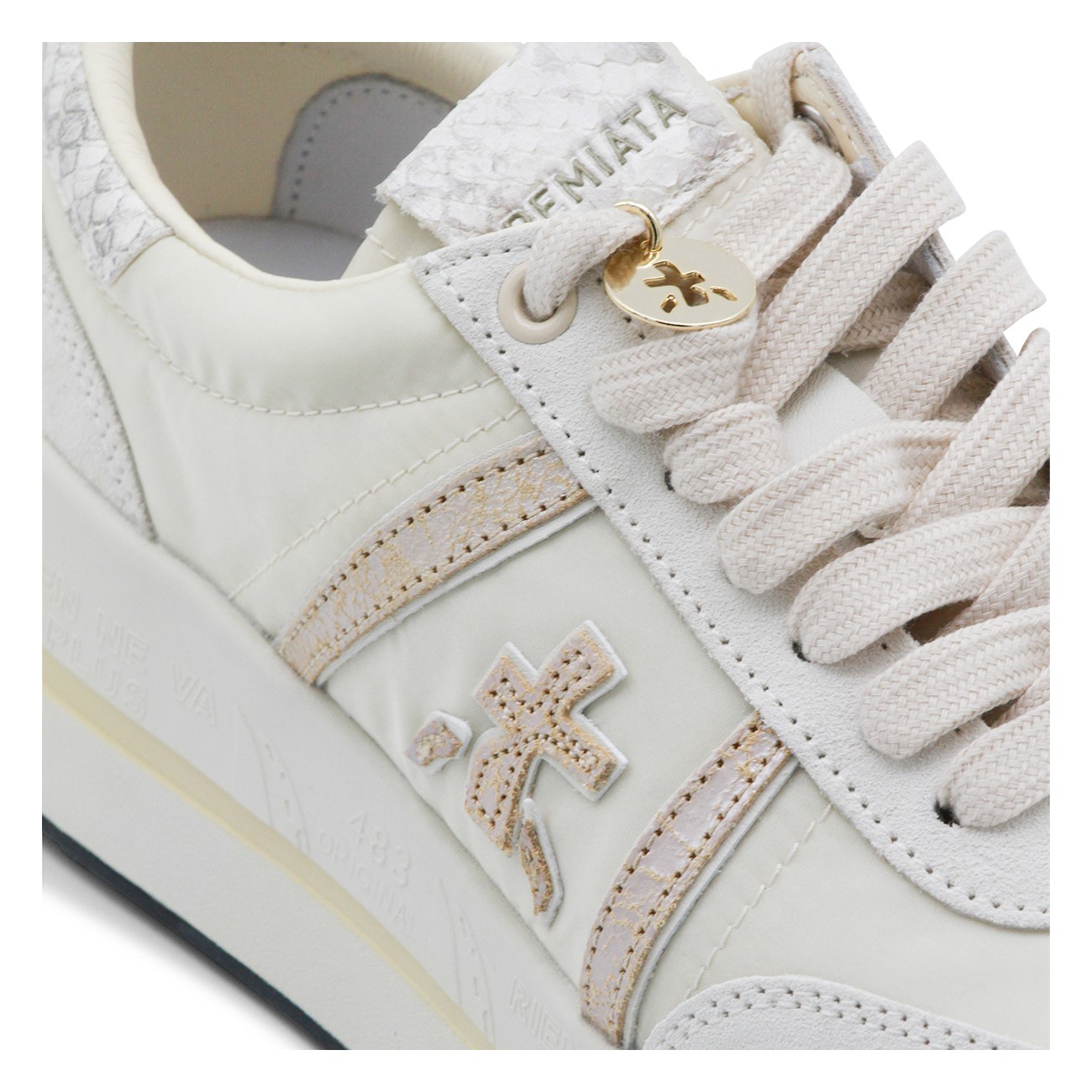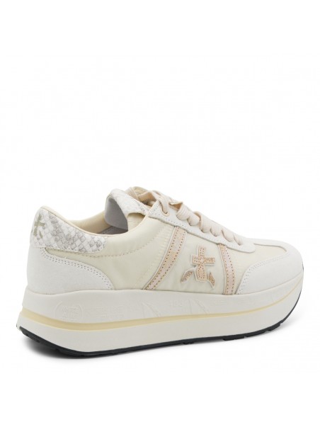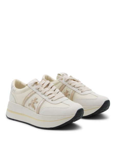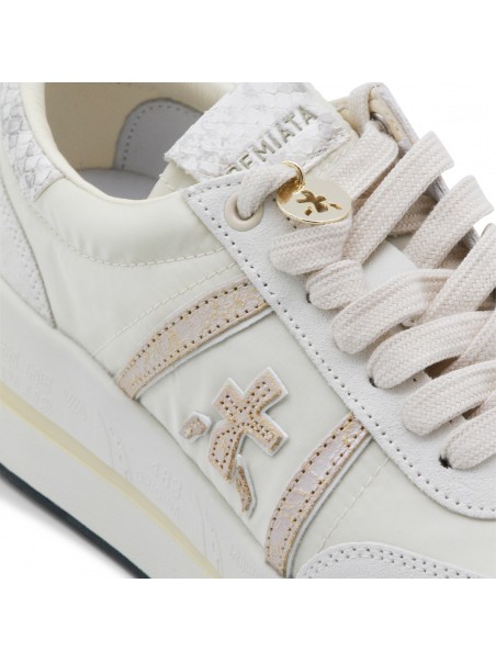 White leather Bethcoin sneakers from Premiata featuring round toe, laces fastening, side logo, branded insole and rubber sole.