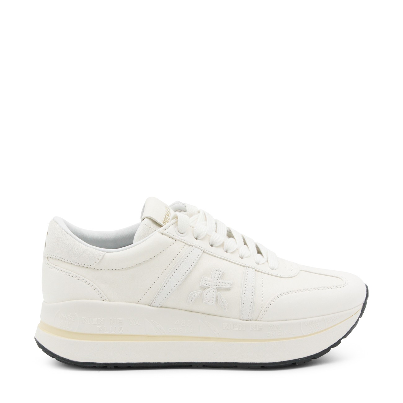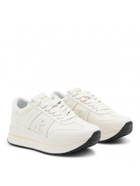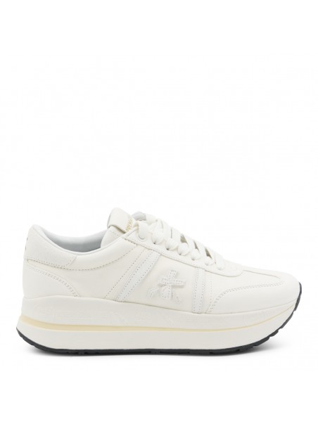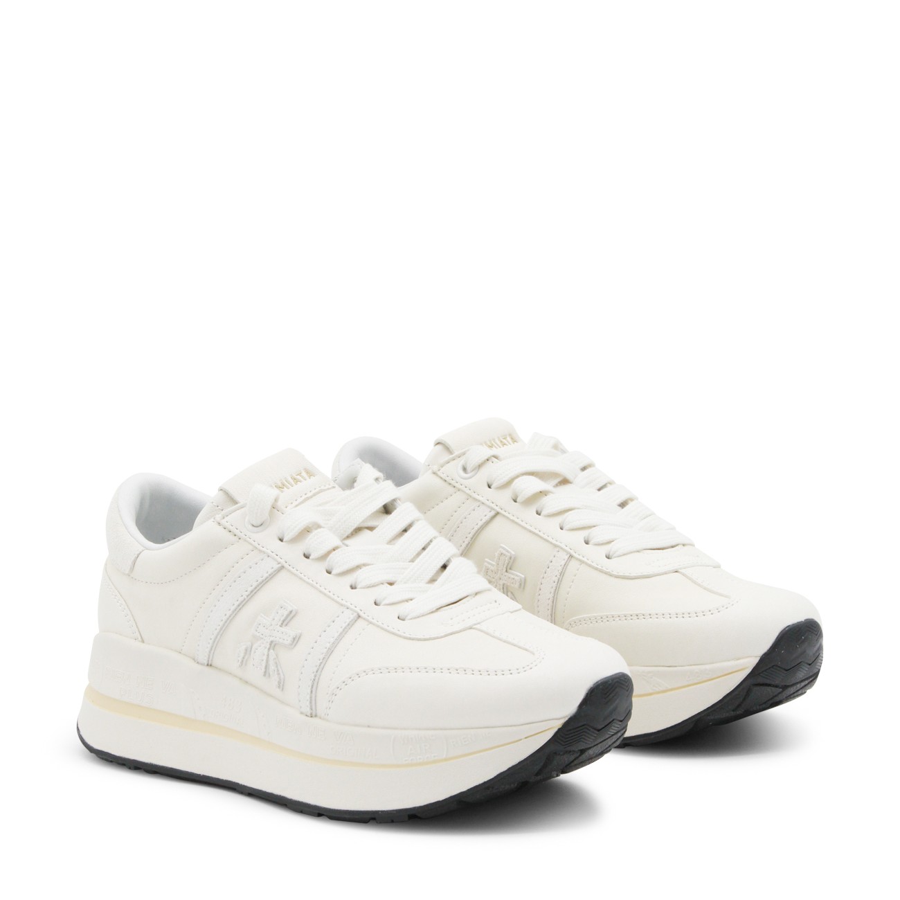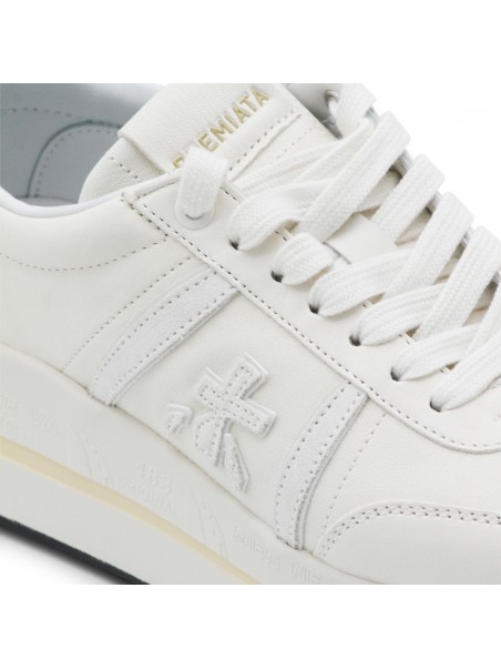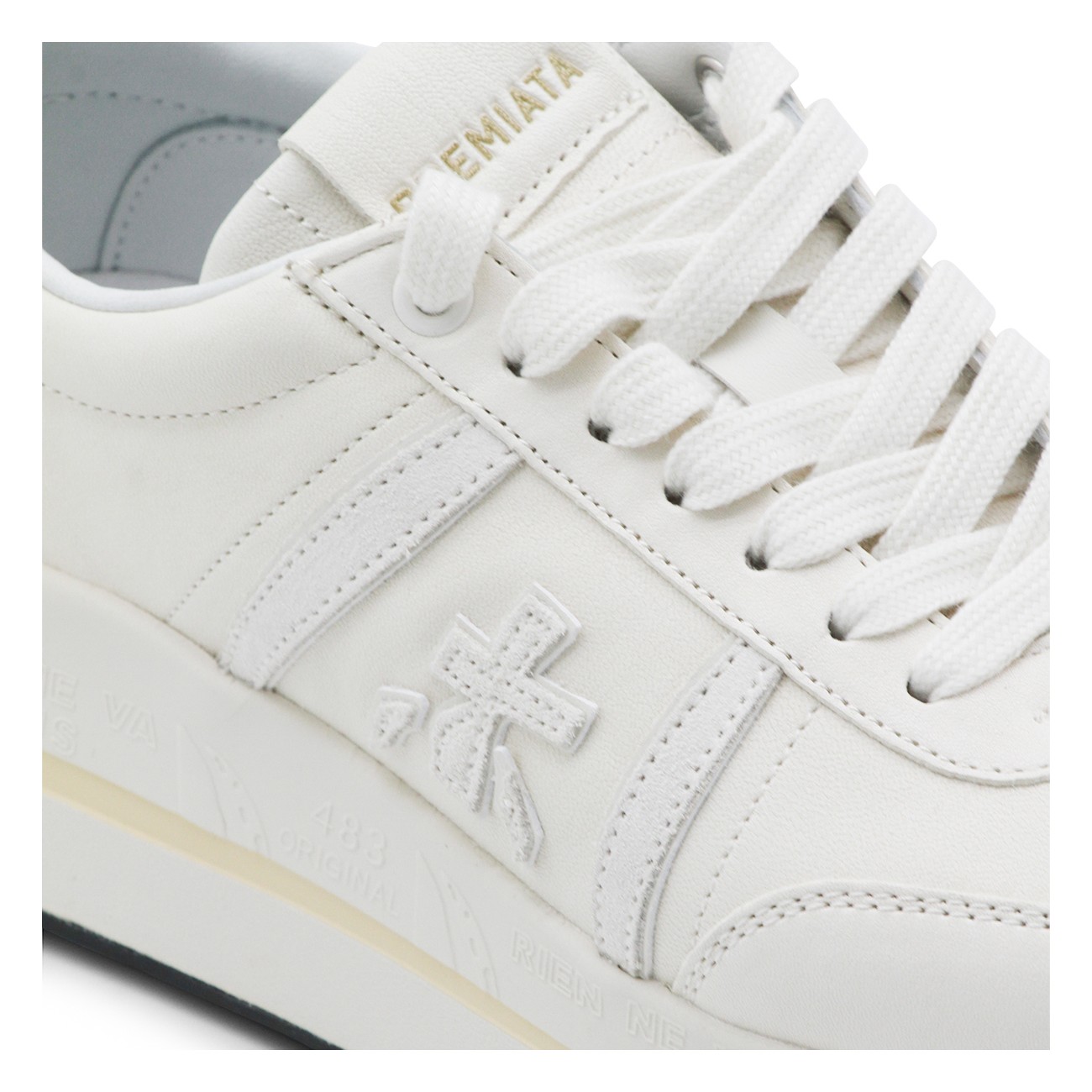 White leather Bethcoin sneakers from Premiata featuring round toe, laces fastening, logo, leather lines, branded insole and thick rubber sole.