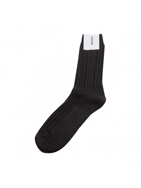 Charcoal cotton-wool blend socks from Ant45 featuring logo print embellishment, elasticated hem and fine knit construction.