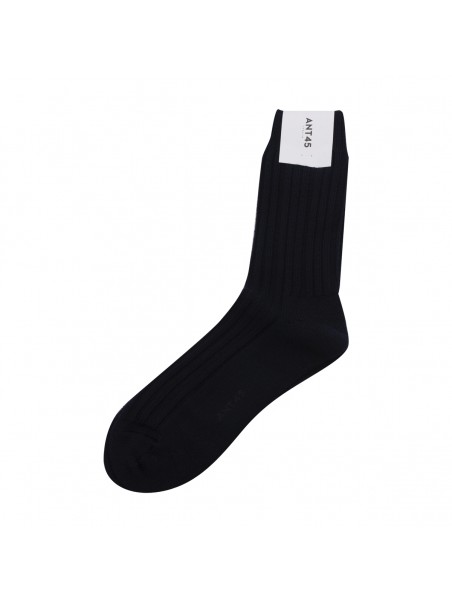 Black cotton-wool blend socks from Ant45 featuring logo print embellishment, elasticated hem and fine knit construction.