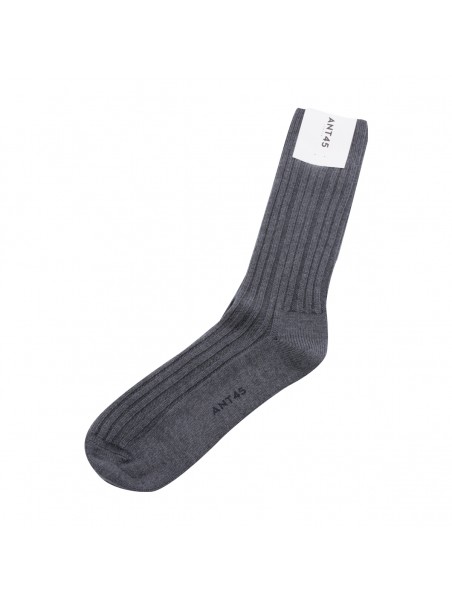 Grey cotton-wool blend socks from Ant45 featuring logo print embellishment, elasticated hem and fine knit construction.