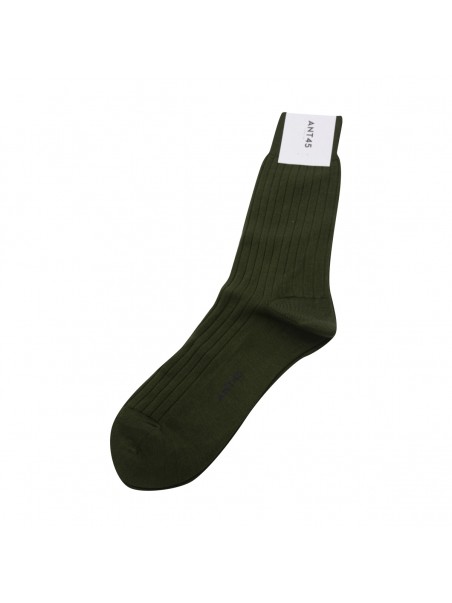 Military green cotton blend socks from Ant45 featuring logo print embellishment, elasticated hem and fine knit construction.