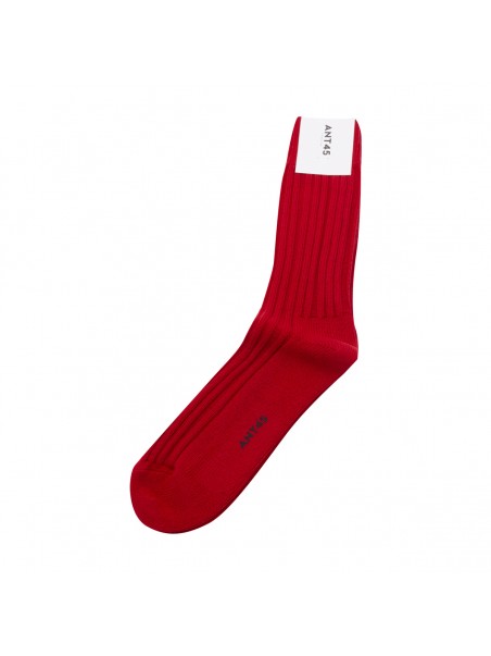Red cotton socks from Ant45 featuring logo print embellishment, elasticated hem and fine knit construction.