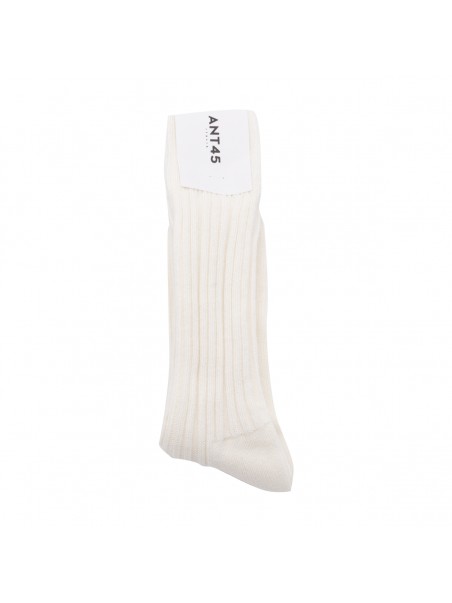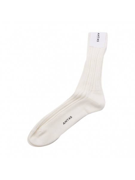 White cotton socks from Ant45 featuring logo print embellishment, elasticated hem and fine knit construction.