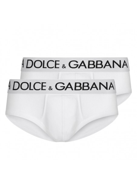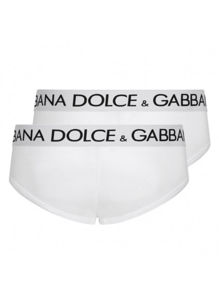 White cotton slip underwear from Dolce & Gabbana featuring elasticizated waist, logo and double pack.