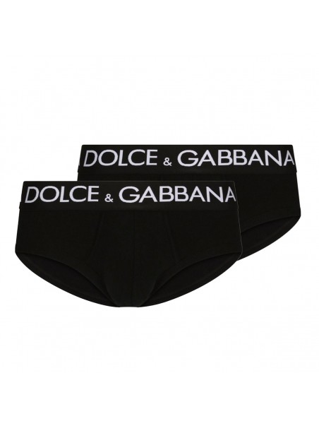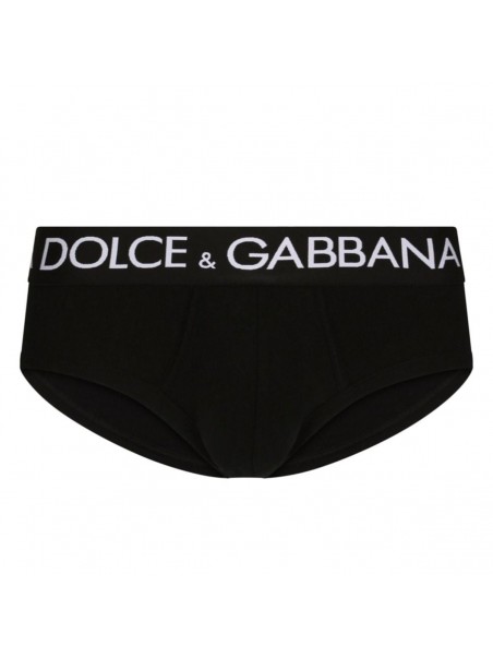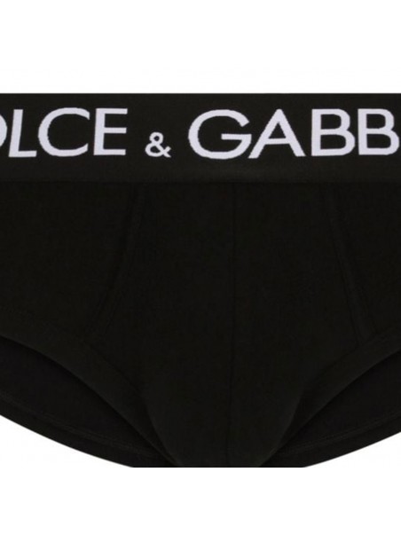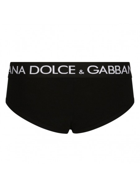 Black cotton underwear from Dolce&Gabbana featuring two pieces, slip and elasticizates waist with logo.