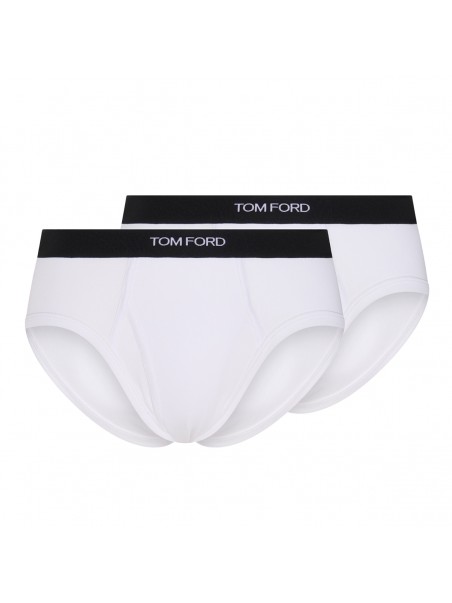 White cotton two-pack briefs from Tom Ford featuring logo waistband, stretch-design and pull-on style.