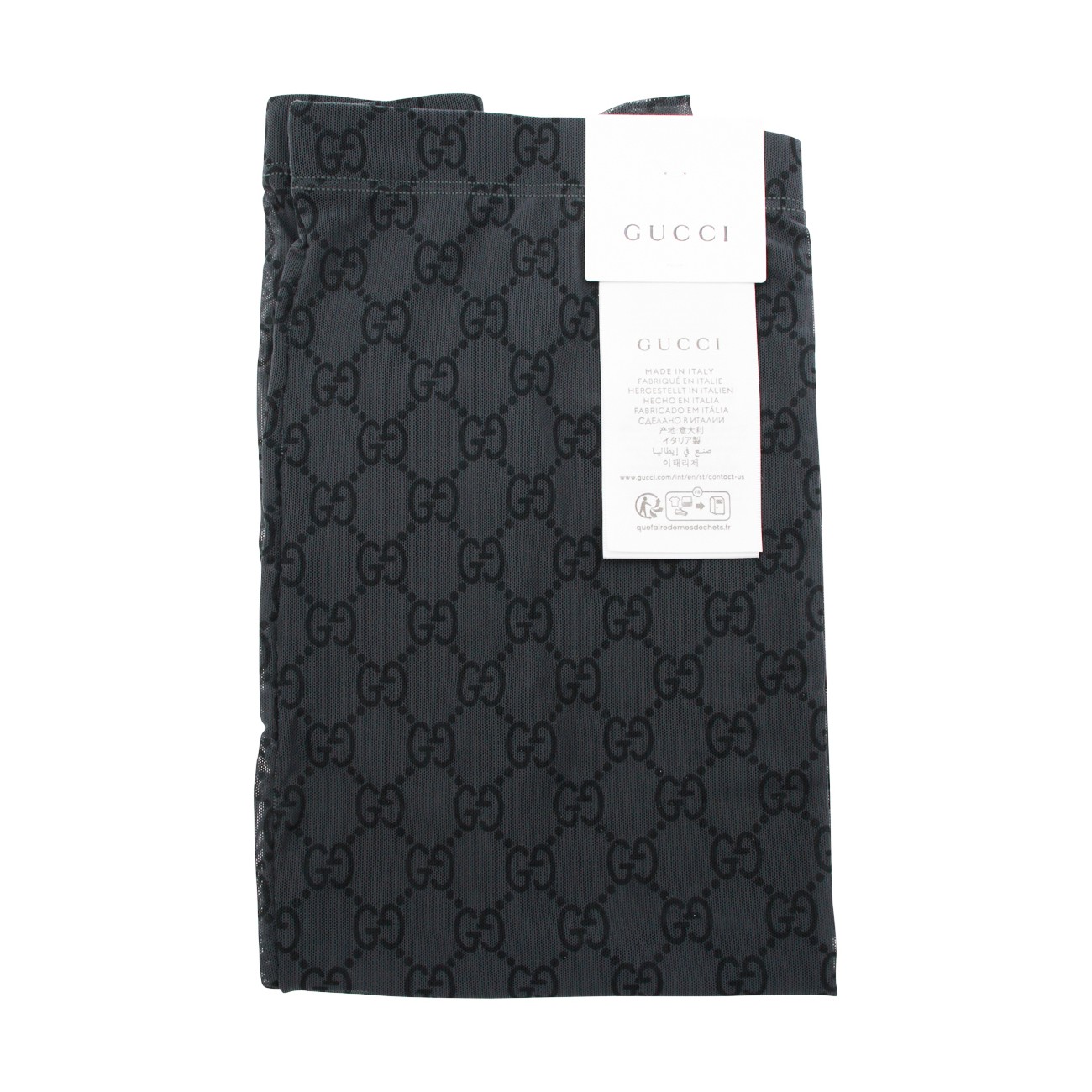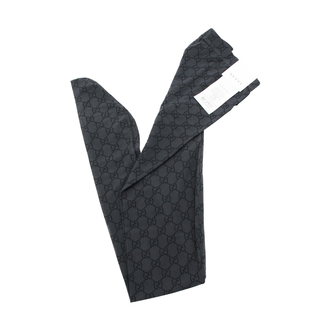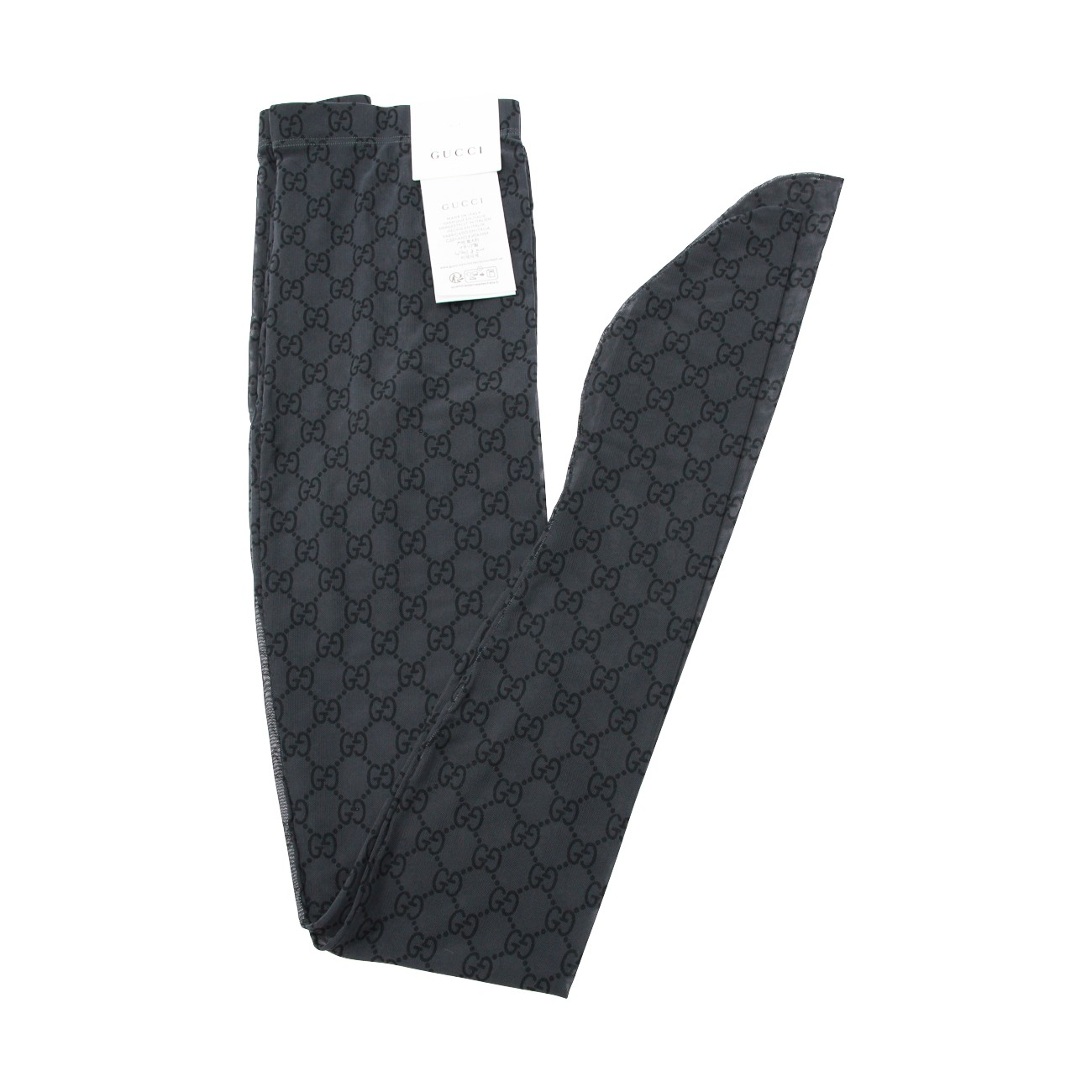 Black socks from Gucci featuring elasticated waistband, all-over GG texture and thigt fit.