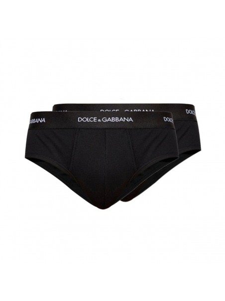 Black cotton two-pack boxers from Dolce&Gabbana featuring regular fit and logo lettering detail at elasticized waistband.