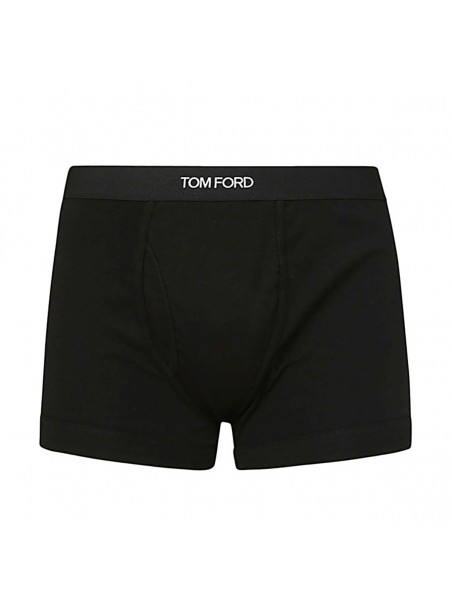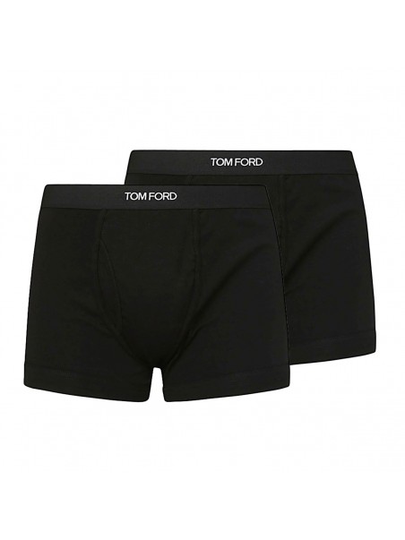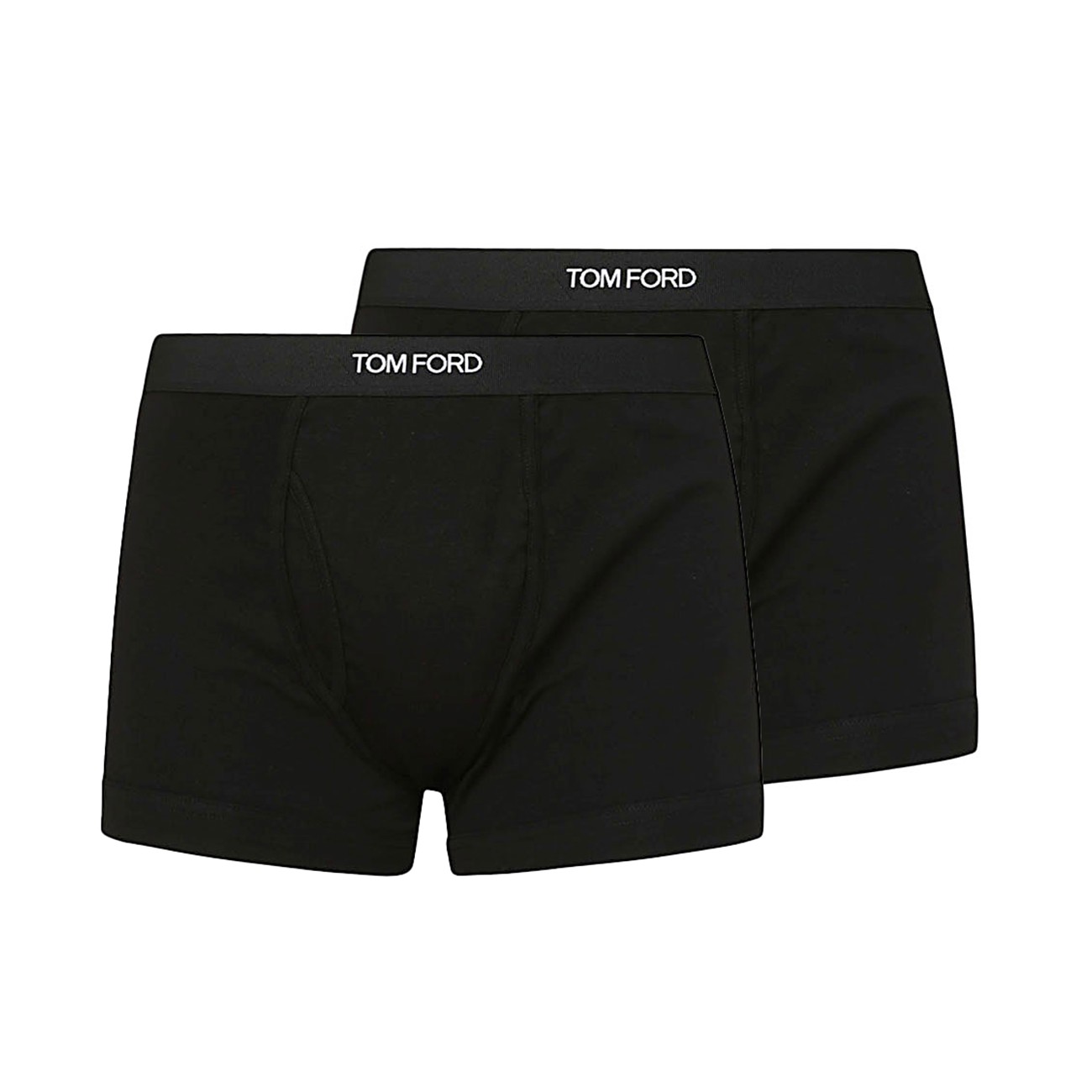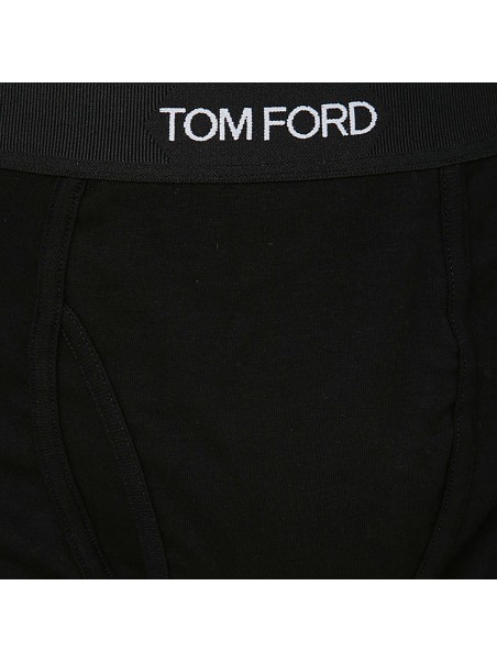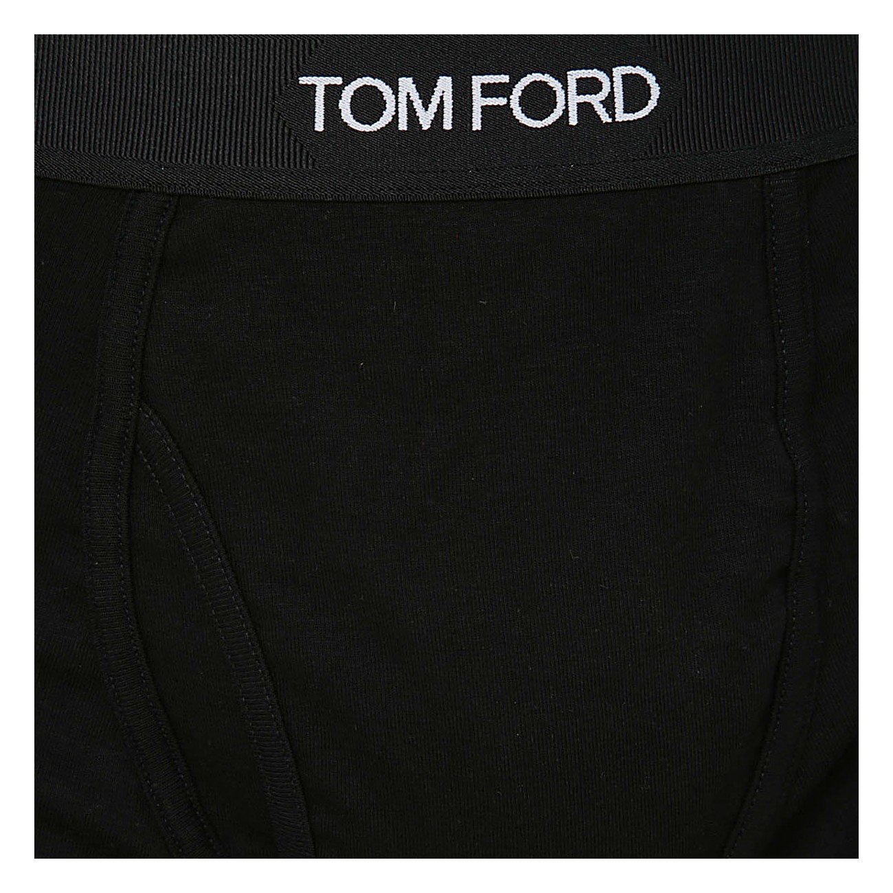 Black cotton two-pack briefs from Tom Ford featuring logo waistband, stretch-design and pull-on style.
