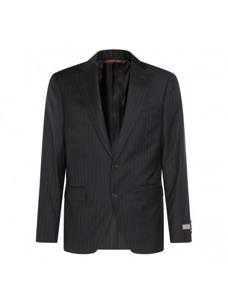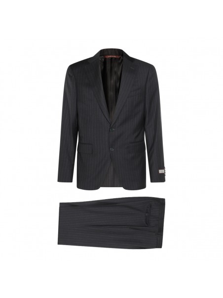 Black wool suits from Canali featuring jacket with long sleeves, button, pockets and pants with frontal fastening, pockets and regular vestibility.