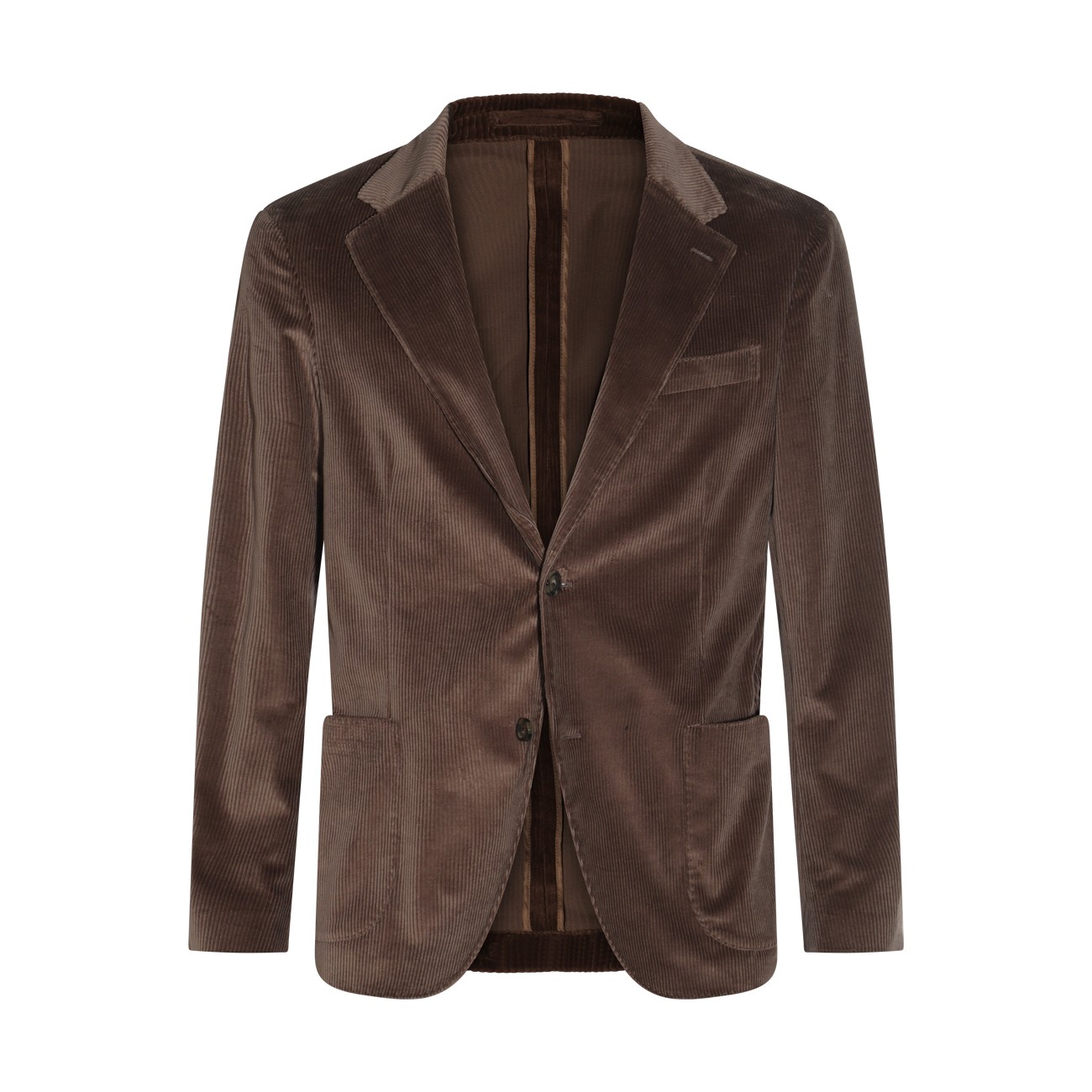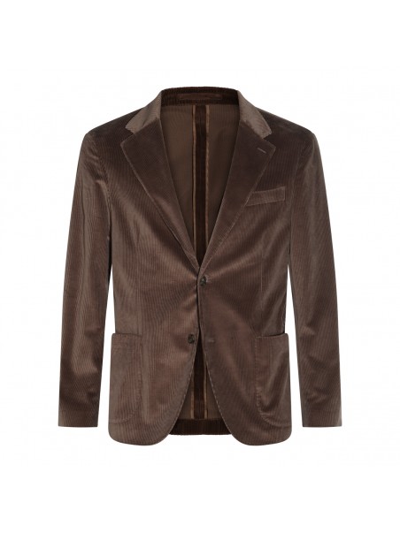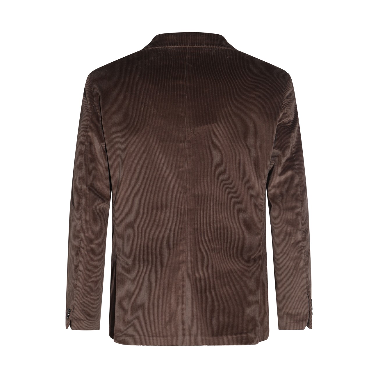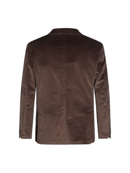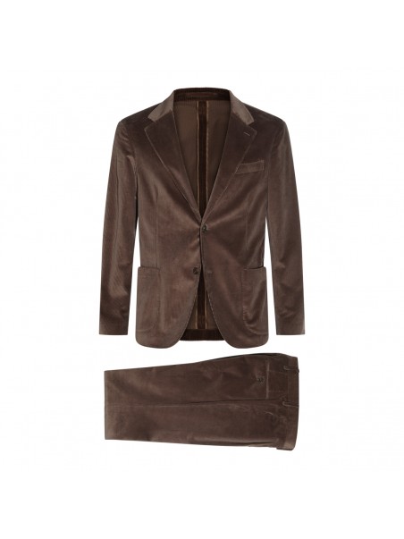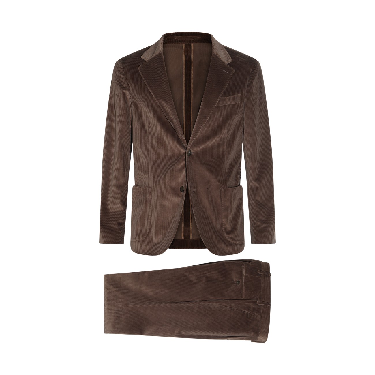 Brown cotton suit from Lardini featuring long sleeves, round collar, buttons fastening and pockets.