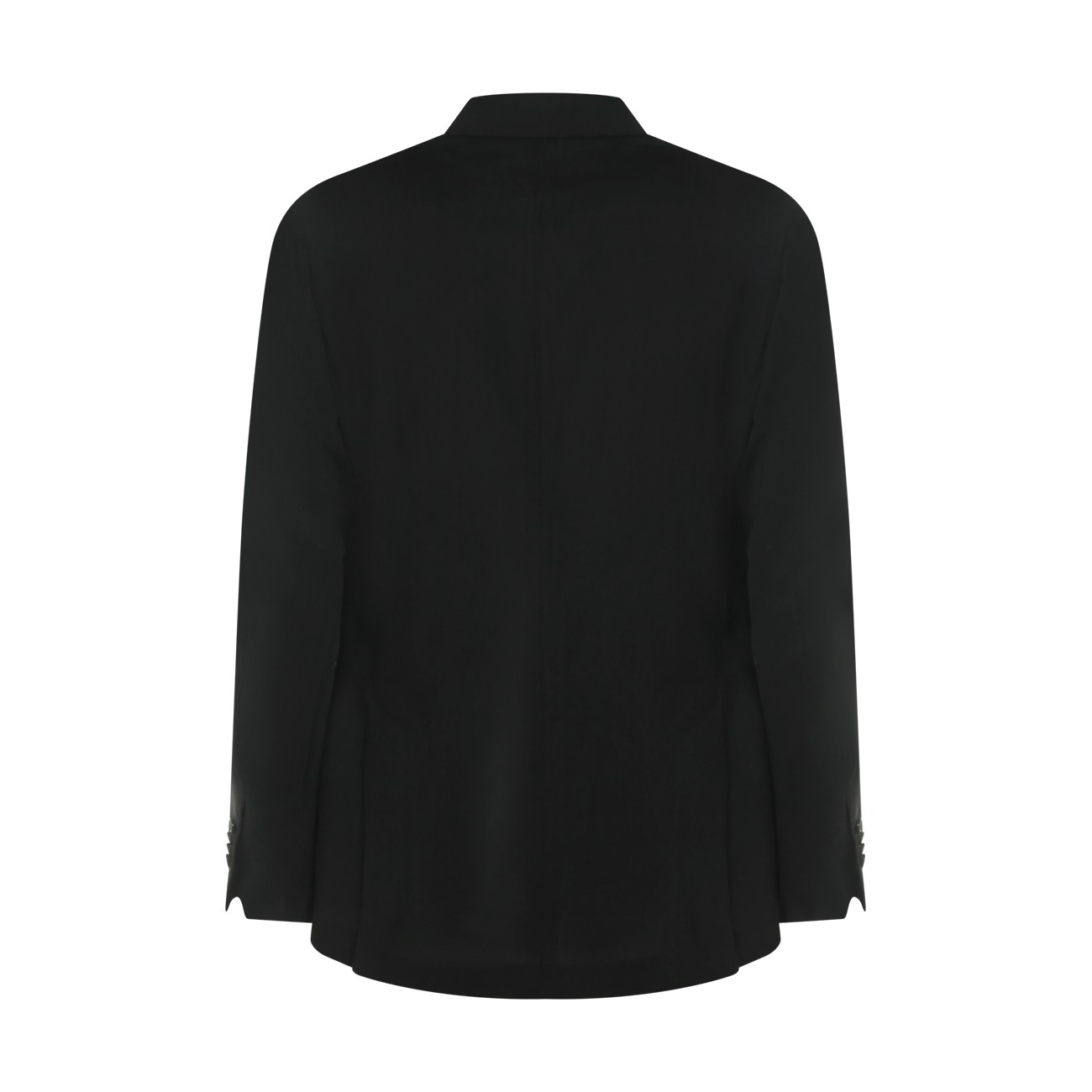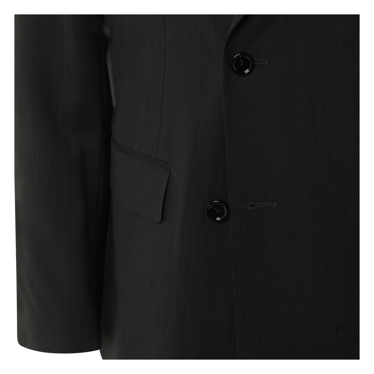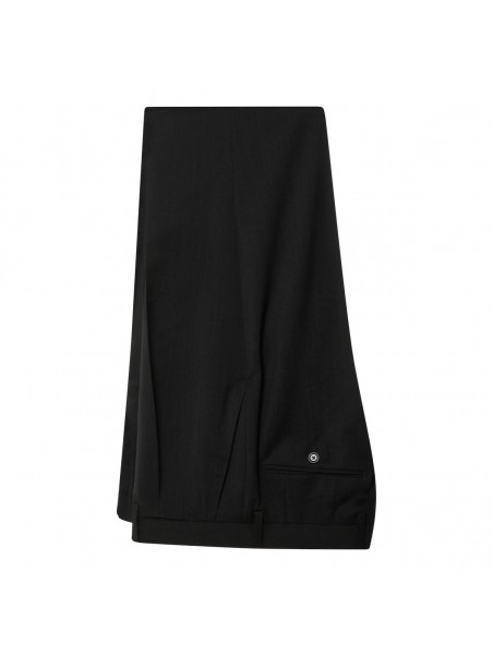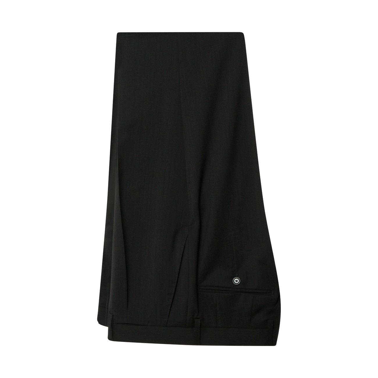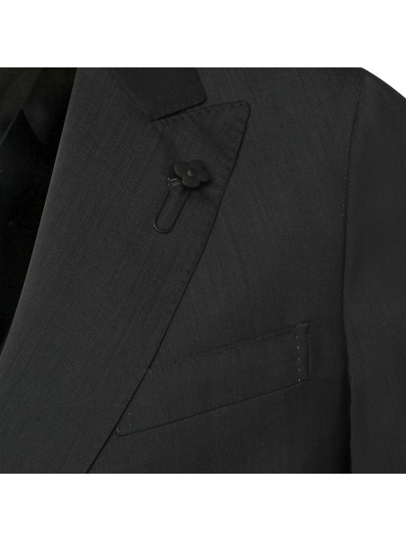 Dark grey wool suit from Lardini featuring long sleeves, double breasted fastening with buttons, pants with buttons and pockets.