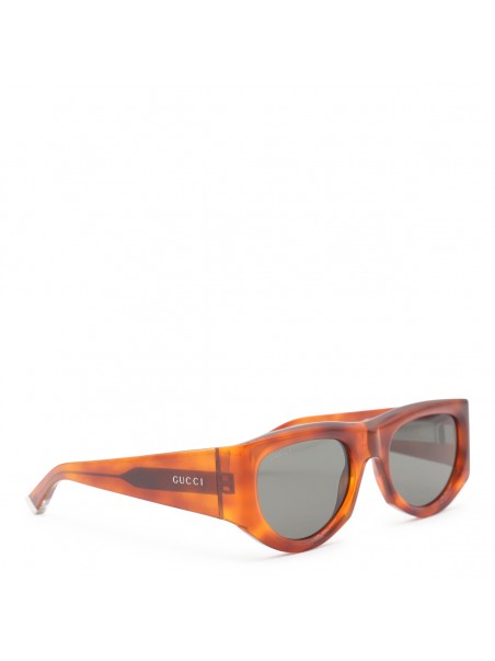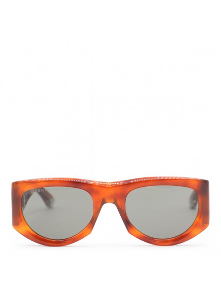 Brown acetate sunglasses from Gucci featuring rectangular shape, logo and UVA/UVB protection.