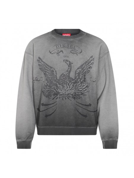 Grey cotton sweatshirt from Diesel featuring long sleeves, round collar, ribbed cuffs and hem and frontal print.