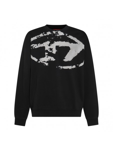 Black cotton sweatshirt from Diesel featuring long sleeves, round collar, print and regular vestibility.