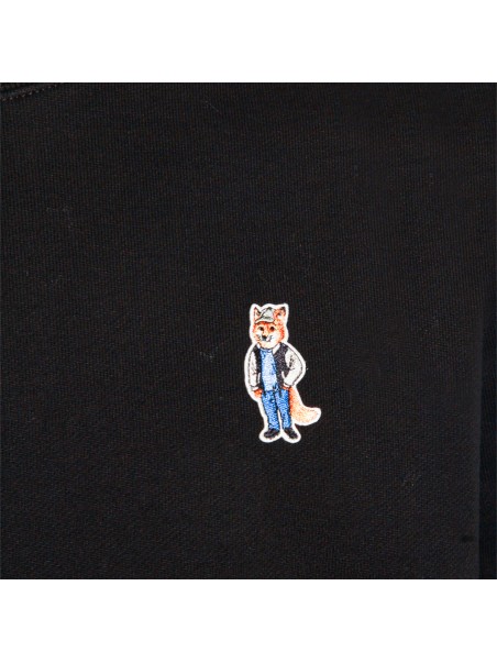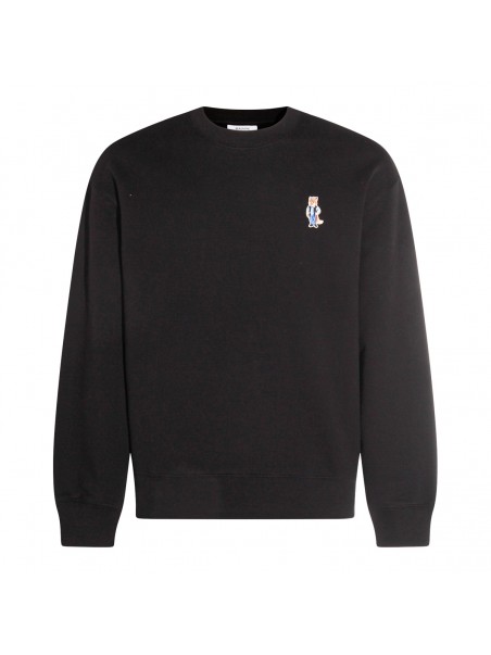 Black cotton sweatshirt from Maison Kitsune featuring round collar, long sleeves, ribbed cuffs and hem and regular vestibility.