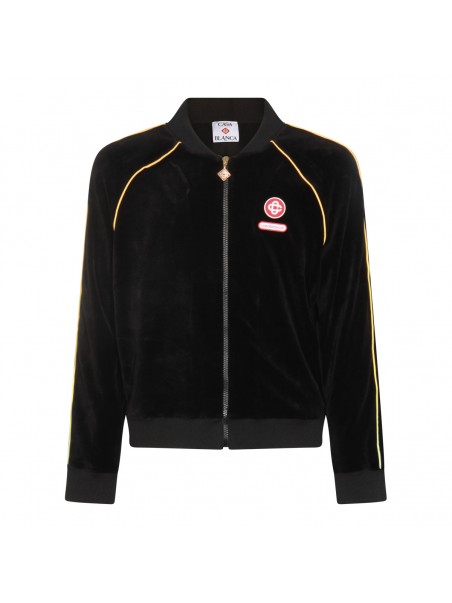 Black cotton sweatshirt from Casablanca featuring long sleeves, zip fastening, logo and regular vestibility.