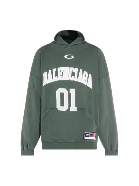 Green cotton sweatshirt from Balenciaga featuring hood, long sleeves, logo, kangaroo pocket and regular vestibility.