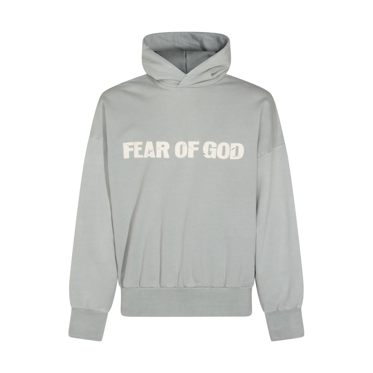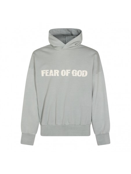 Light grey cotton sweatshirt from Fear Of God featuring hood, long sleeves, frontal print and normal vestibility.