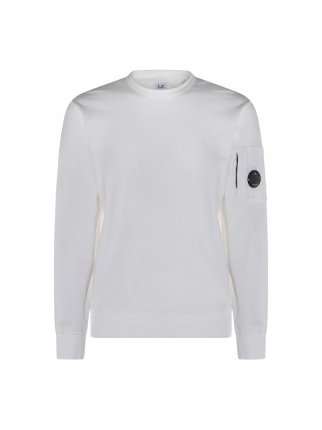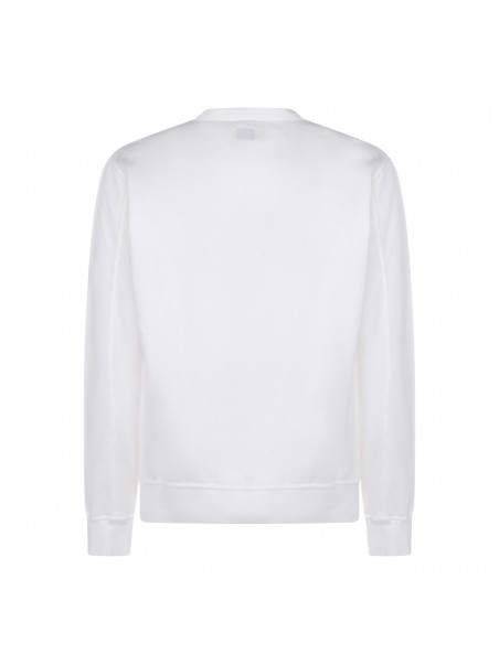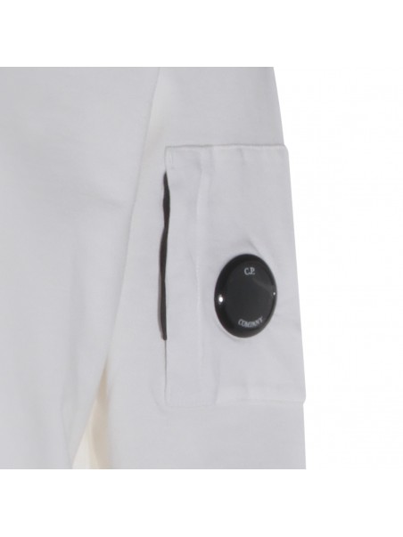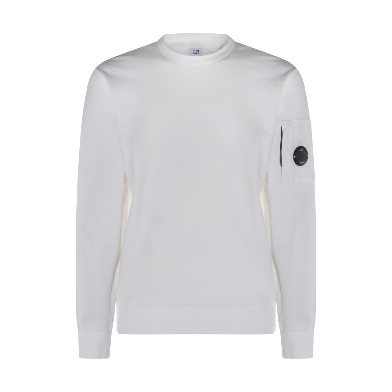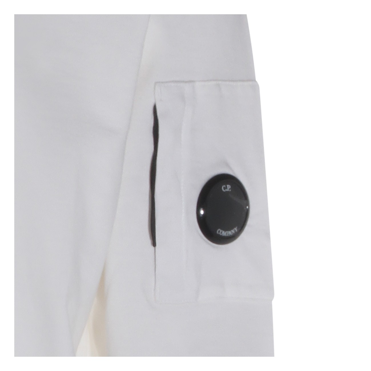 White cotton sweatshirt from Cp Company featuring long sleeves, round collar, logo patch and ribbed cuffs and hem.