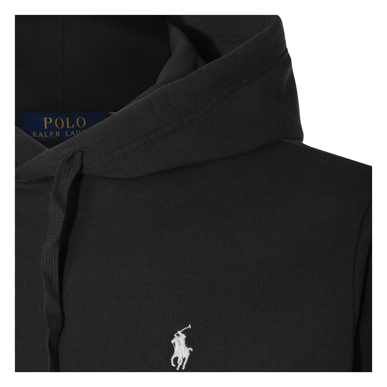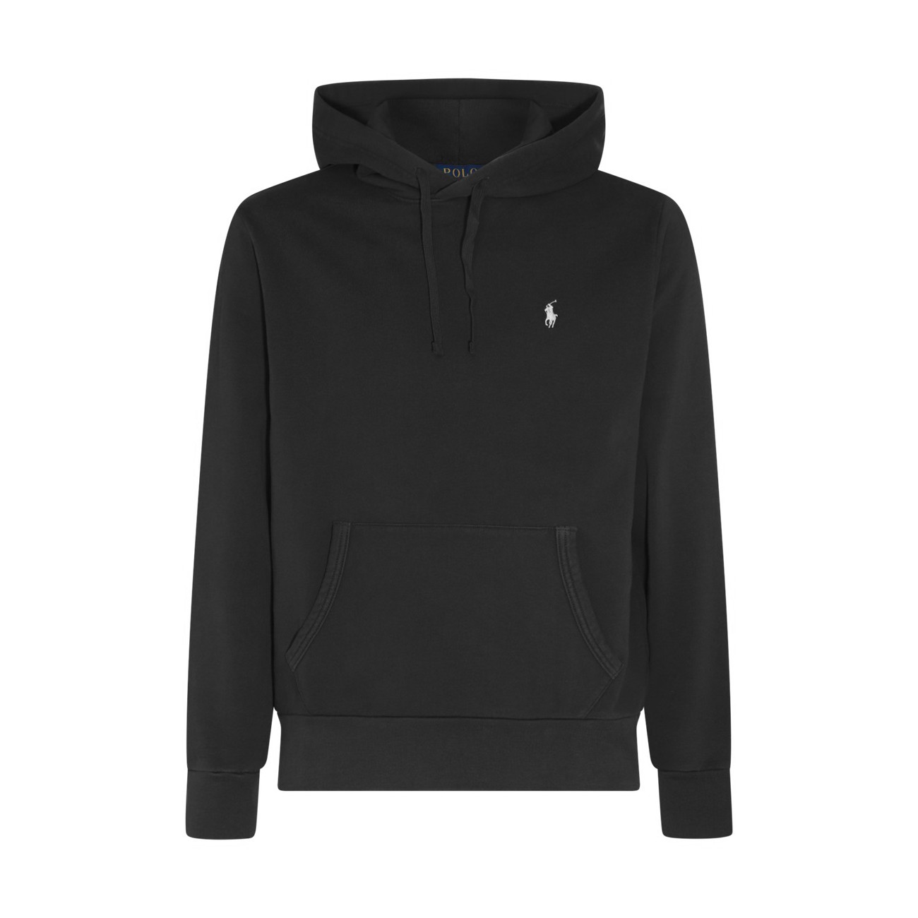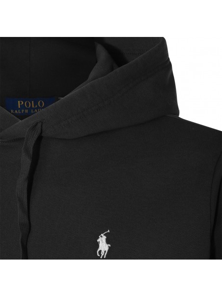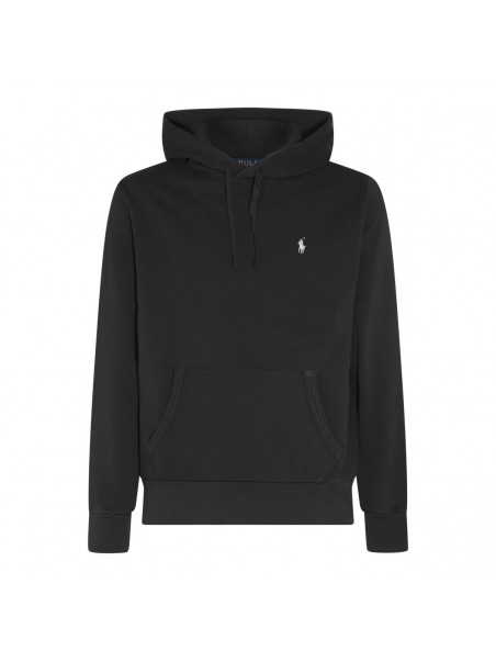 Black cotton sweatshirt from Polo Ralph Lauren featuring long sleeves, round collar, ribbed cuffs and hem, kangaroo pocket, hood, frontal embroidered logo and regular vestibility.