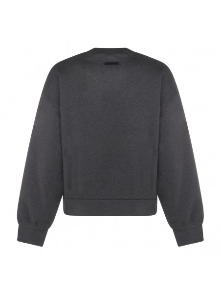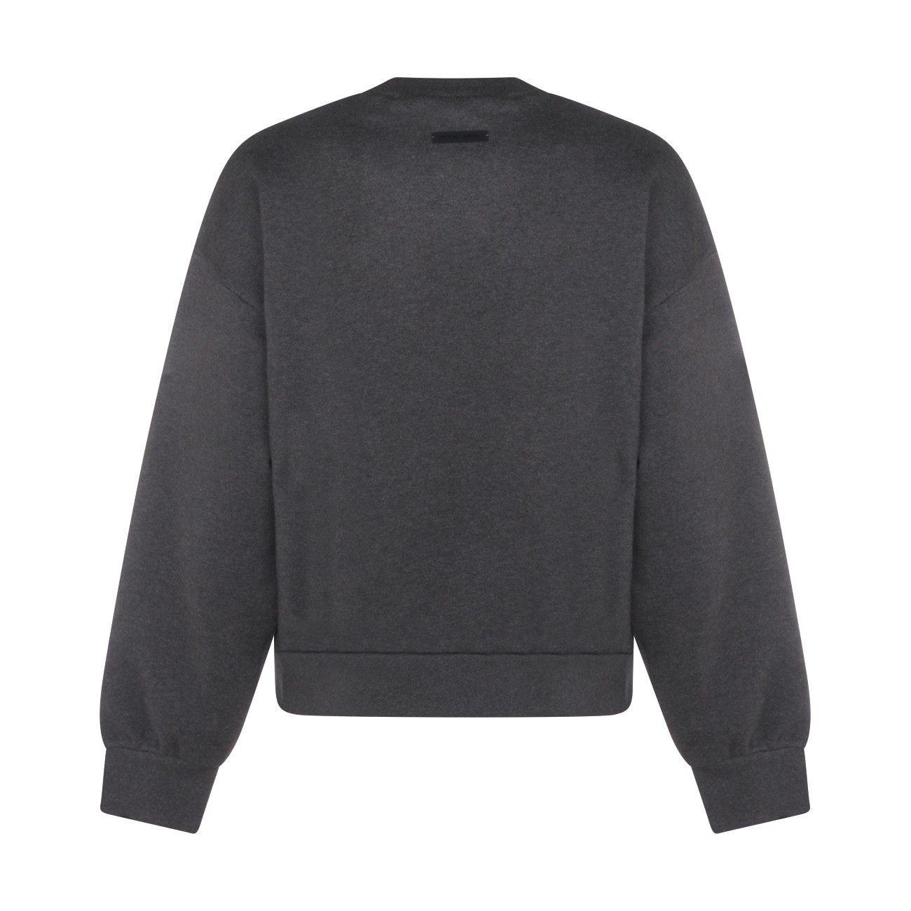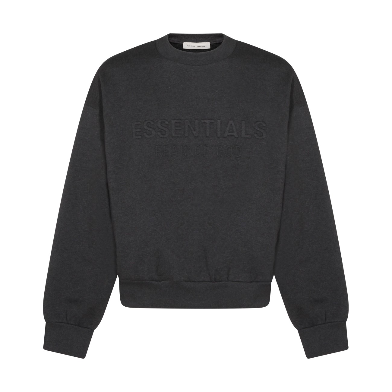 Dark grey cotton sweatshirt from Fear Of God Essentials featuring crew neck, long sleeves, embossed logo, rib-knit hem and cuffs and relaxed fit.