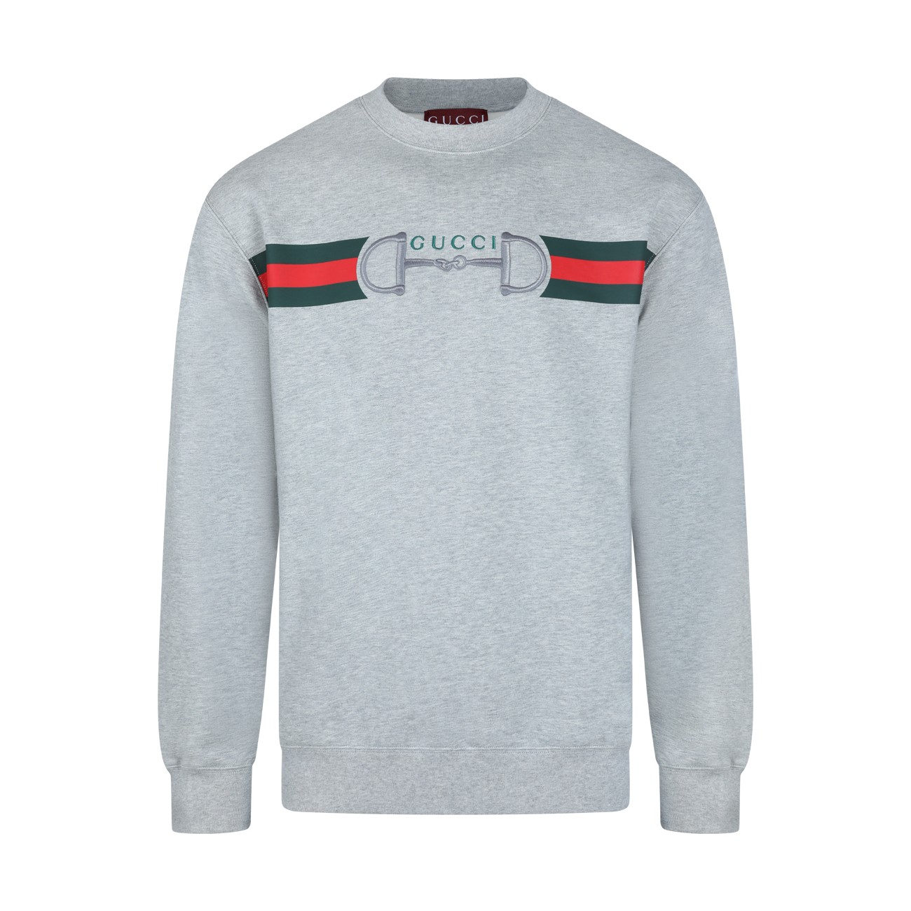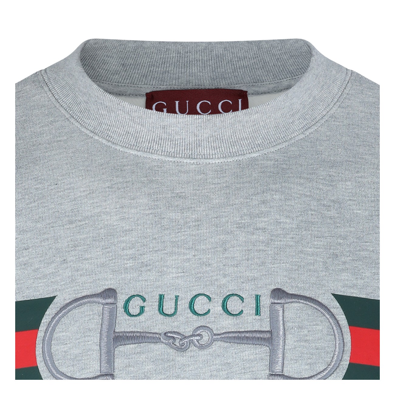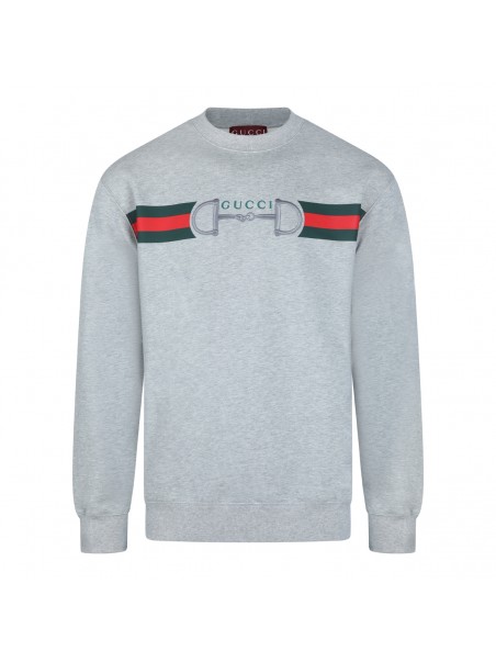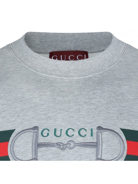 Grey cotton sweatshirt from Gucci featuring long sleeves, round collar and frontal logo print.