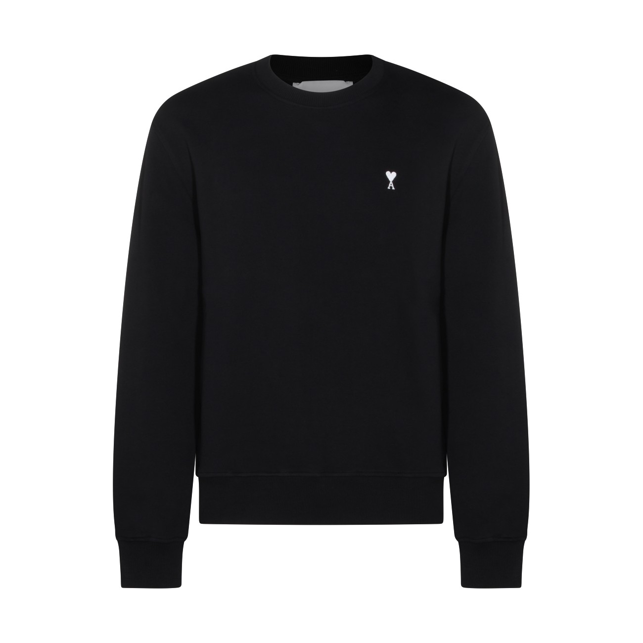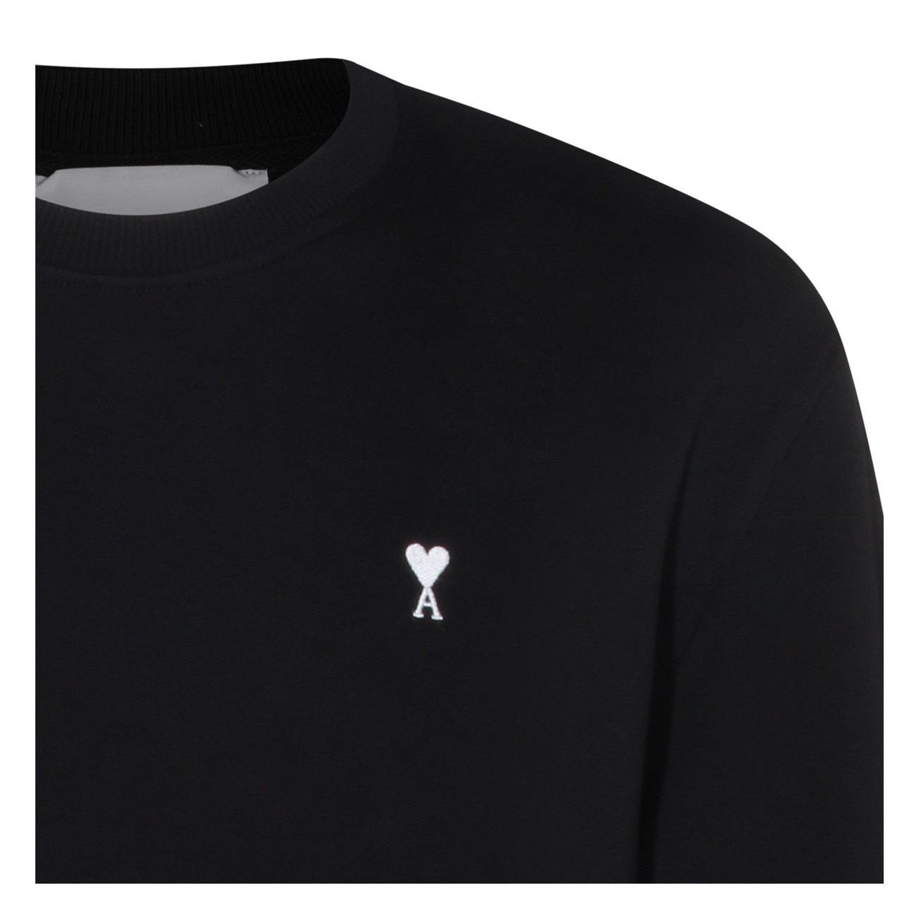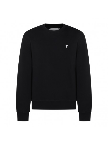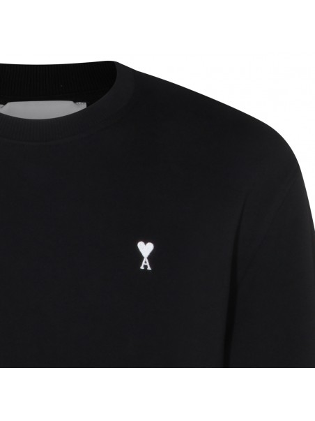 Black cotton sweatshirt from Ami Paris featuring round collar, long sleeves, frontal logo at chest and regular fit.