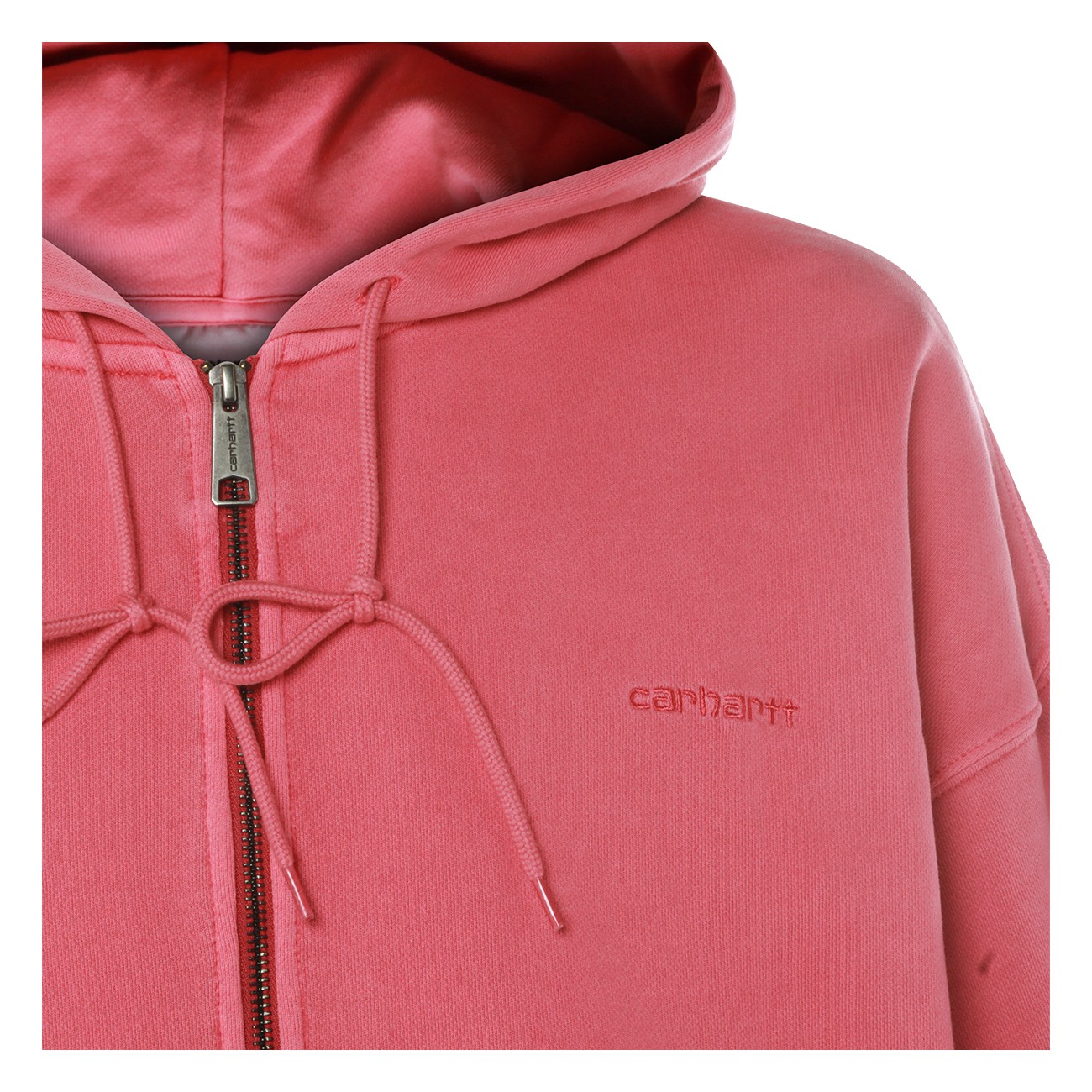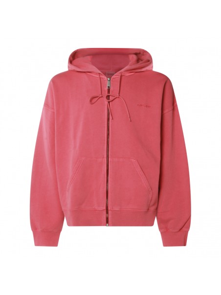 Primrose cotton sweatshirt from Carhartt WIP featuring long sleeves, zip closure at front, hoodie, ribbed hems, emboridered logo at front and regular fit.