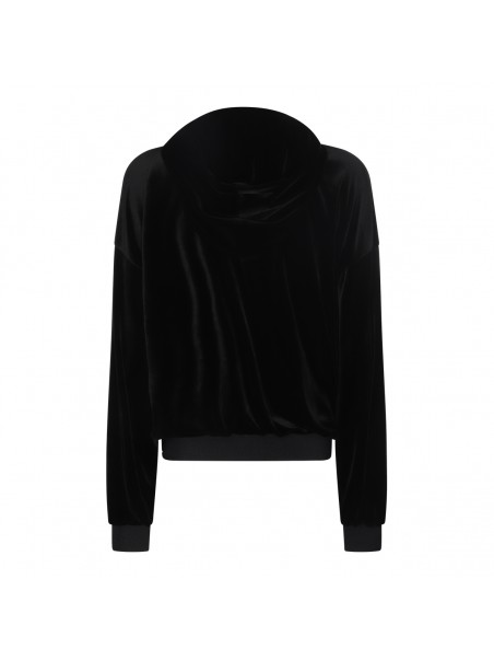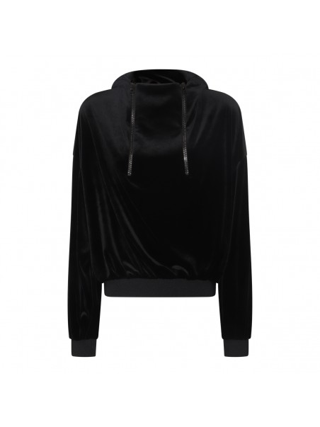 BLACK STRETCH LUSTROUS VELOUR SWEATSHIRT